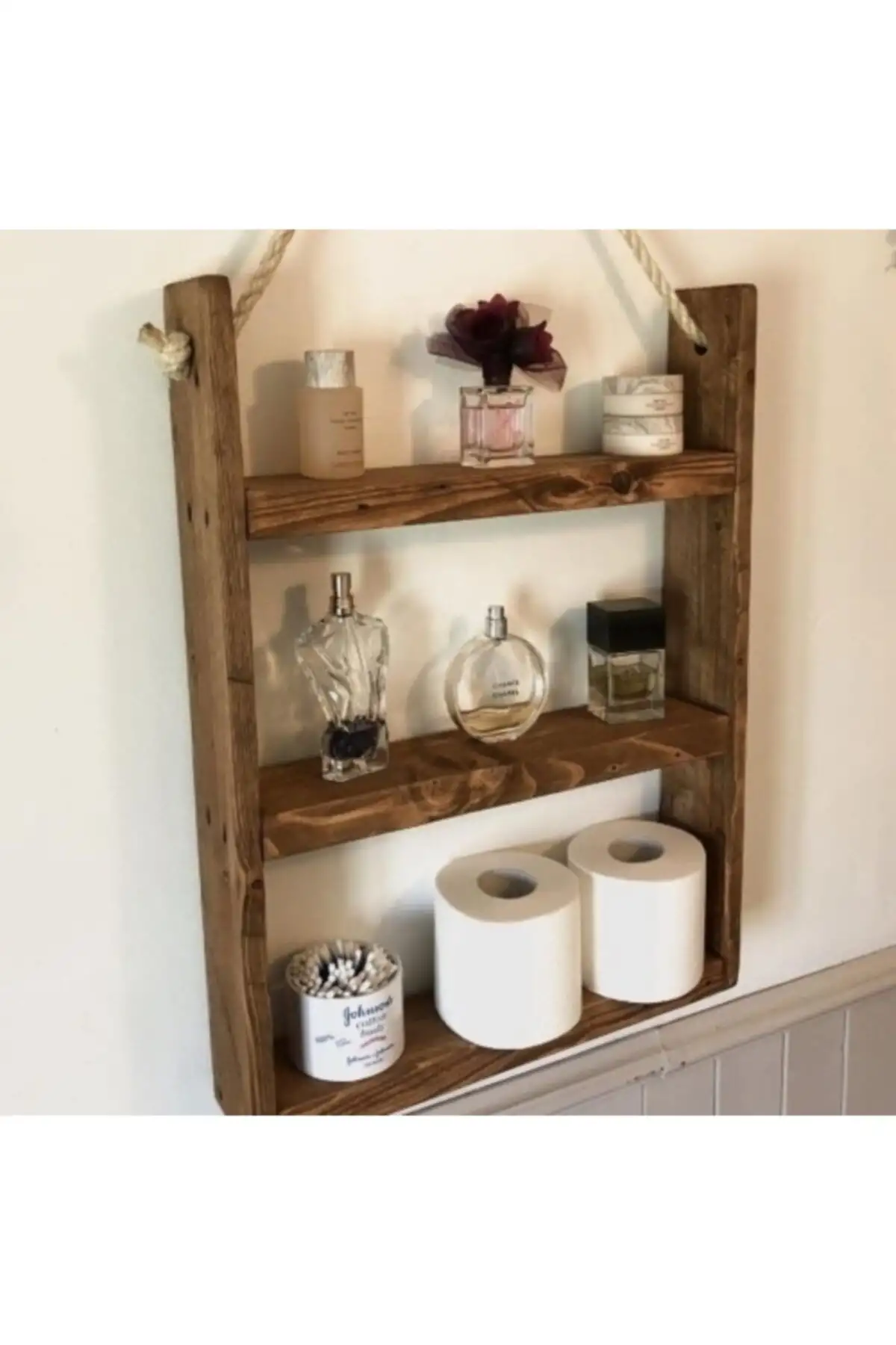 Cu un aspect minimalist, raftl cu sfoara nu va trece neobservat. Dimensiunile sunt ideale pentru a depozita fie periute, comsetice, sapunuri lichide. Realizat din lemn cu grosime 18 mm si cu un design rustic, acest raft suspendat completeaza foarte bine decorurile moderne.