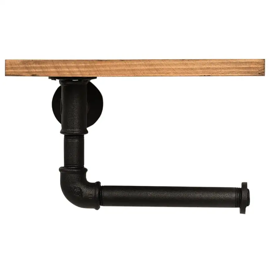 Suport hartie igienica stil industrial Homs 25×12 cm este un accesoriu pe care vrei sa-l integrezi in incaperea pentru relaxare. Baia este un spatiu Zen, insa conteaza foarte mult cum iti optimizezi spatiul. Tocmai de aceea, acest design super atragator se pliaza atat pe gusturile moderne, cat si pe cele clasice. Chiar daca este un accesoriu din stilul industrial, faptul ca are lemn si mental negru, il face ideal si in camerele in stil rustic. Stim cu totii ca lemnul creeaza o atmosfera calda si primitoare, iar pentru a compensa raceala gresiei, lemnul este materialul perfect pentru mobilierul din baie.