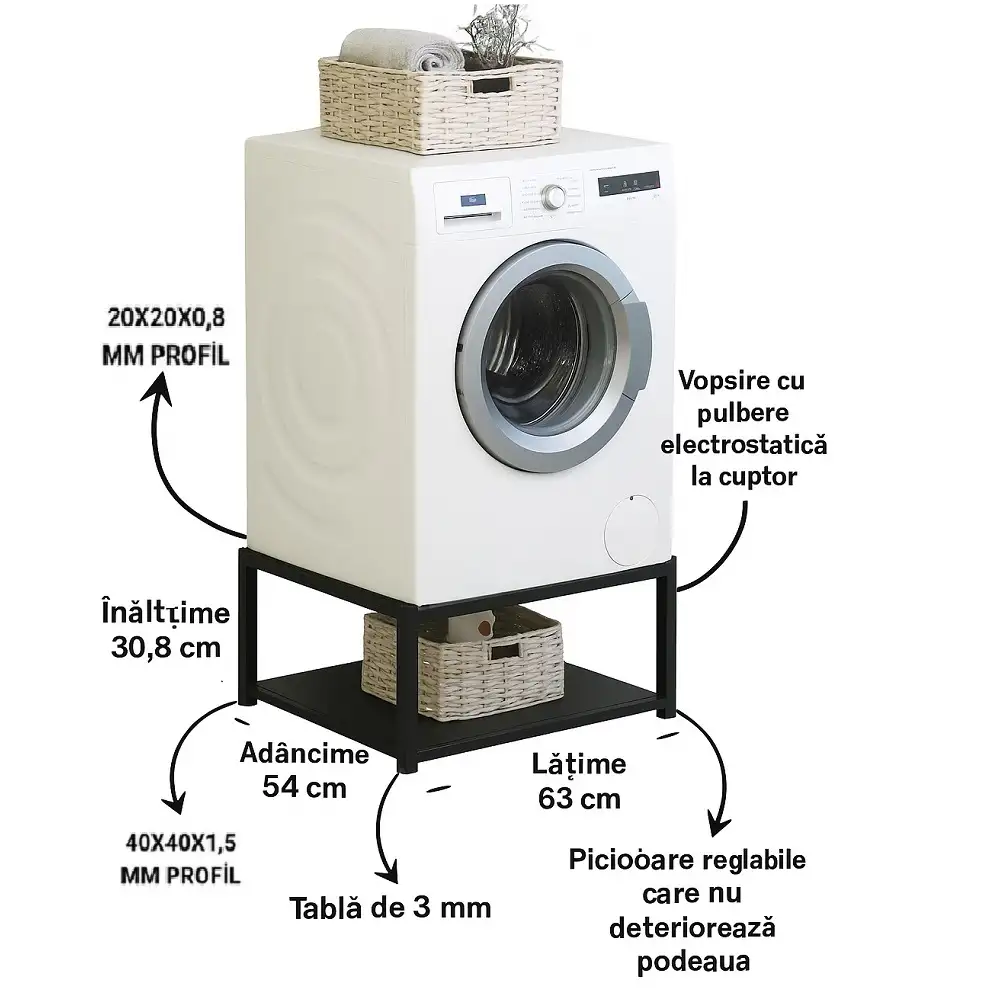 Suport metalic pentru mașină de spălat și uscăto,culoare negru,
