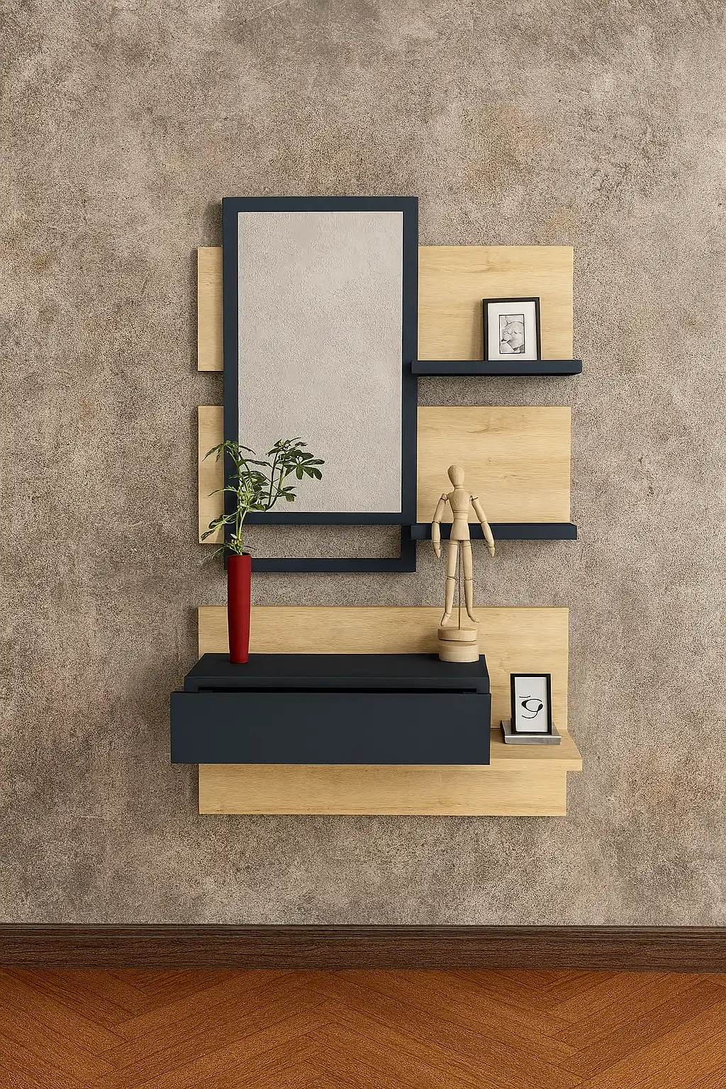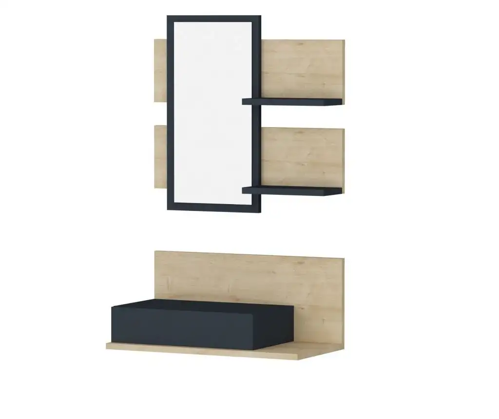 Corp suspendat cu oglinda pentru hol, Mina Homs, 60 x 87.5 x 31.3 cm, stejar/gri- o masa de make-up multifunctionala