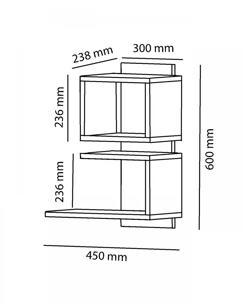 Aceasta polita supendata din pal iti aduce un avantaj atat la nivel estetic, cat si functional. Forma geometrica ii confera un aer modern si inovator. Compartimentele pot fi folosite pentru a pastra diferite carti, accesorii, elemente decorative, ori fotografii cu cei dragi.