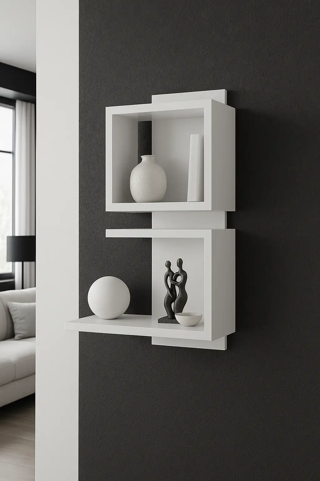 Aranjeaza-ti piesele de arta pe un raft perete Salia Homs alb