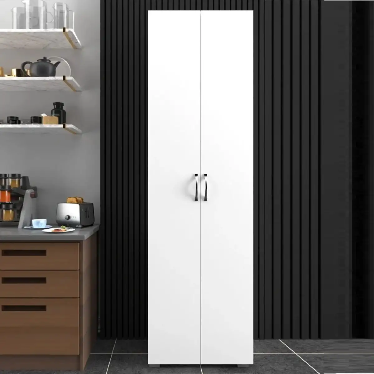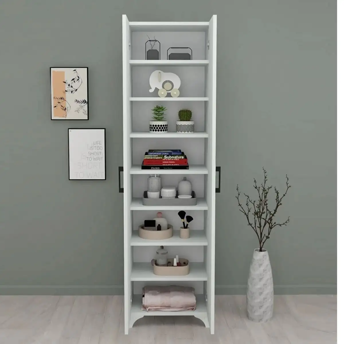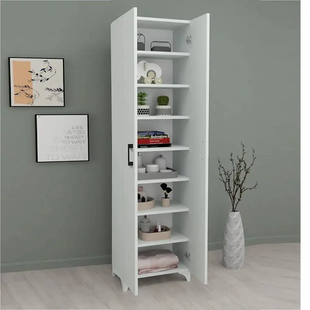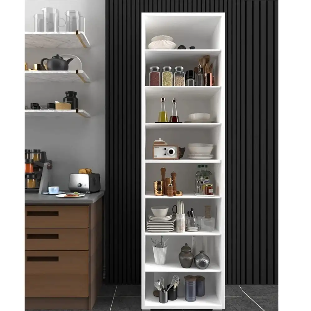 Descoperă versatilitatea și funcționalitatea maximă cu modelul de dulap multifunctional cu 8 rafturi, în nuanța luminoasă de alb!