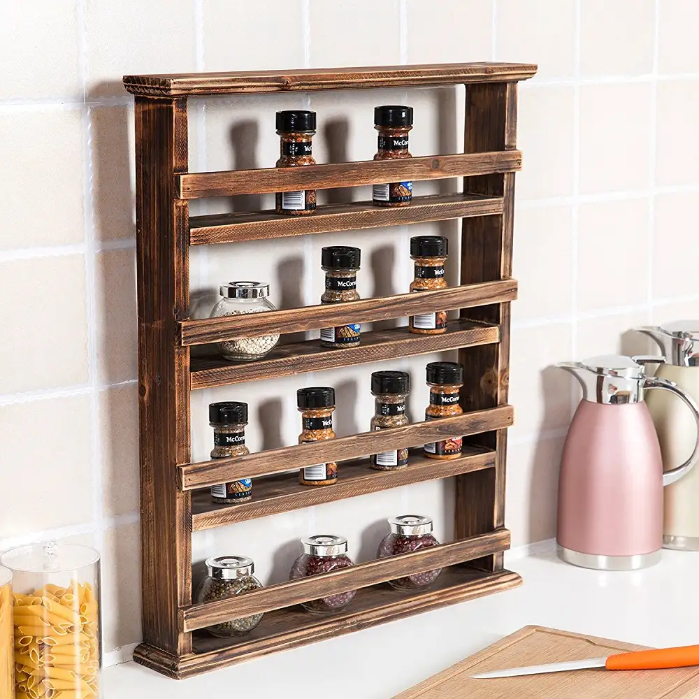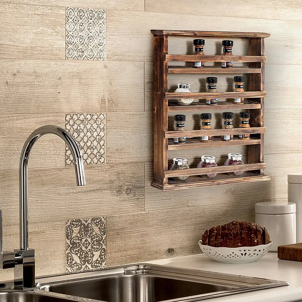 Raft condimente bucatarie din lemn masiv 48 cm