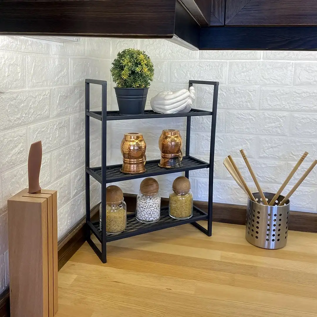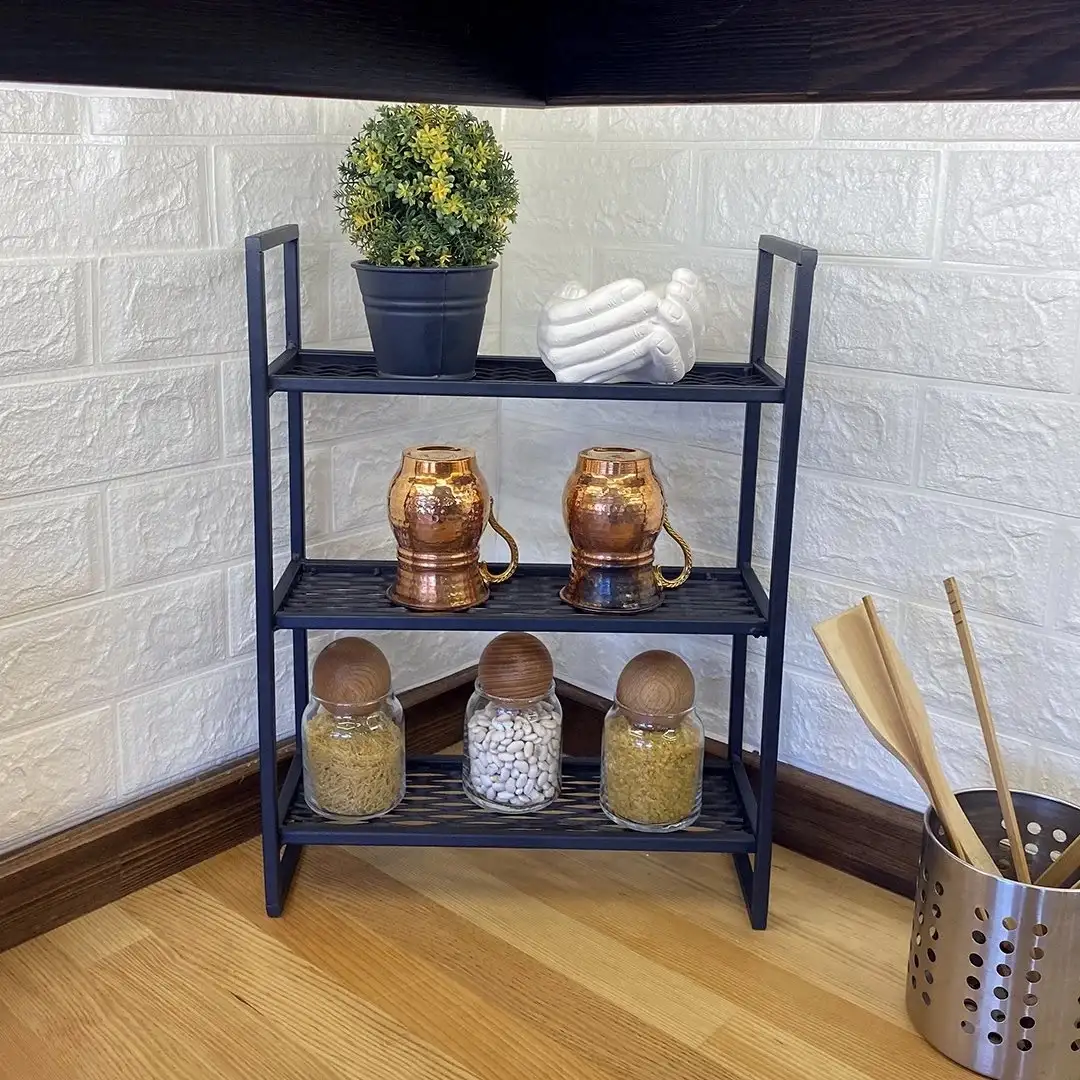 Opteaza pentru etajera cu 3 rafturi din metal pentru pahare si cani si adauga un plus de organizare si eleganta pentru mobila bucatarie. Fie ca o folosesti acasa sau in spatii comerciale, aceasta etajera practica si stilata iti va permite sa pastrezi vesela la indemana si sa creezi un aspect ordonat si placut in bucatarie.