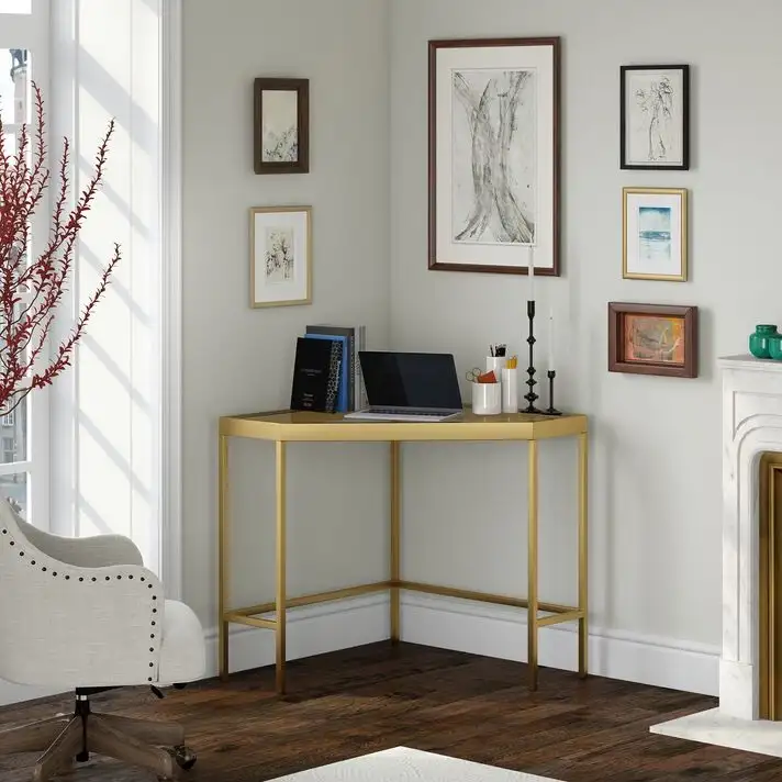 Masa birou colt Corner,sticla,Homs, 100 x 75 x 75 cm, gold
