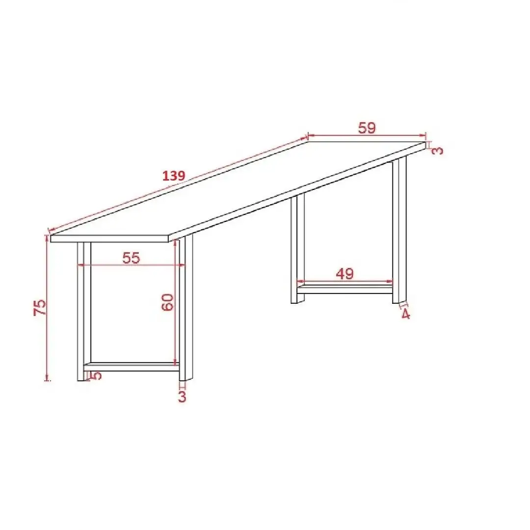 Latime :140 cmAdancime : 59 cmInaltime : 75 cmGrosimea masa: 3 cmDimensiuni profil metalic: 40×30 mm.