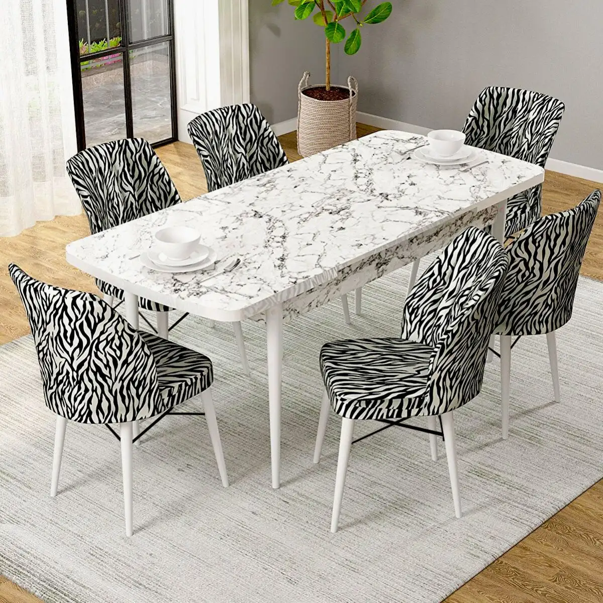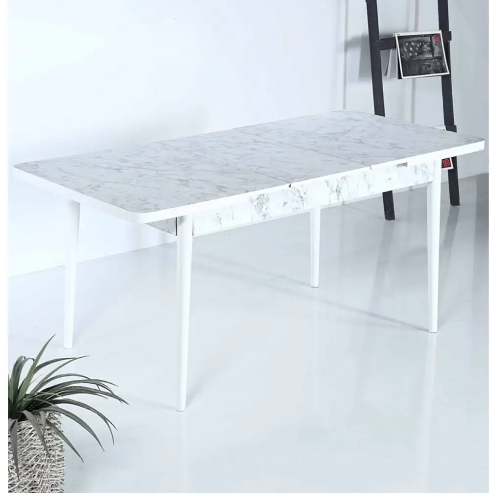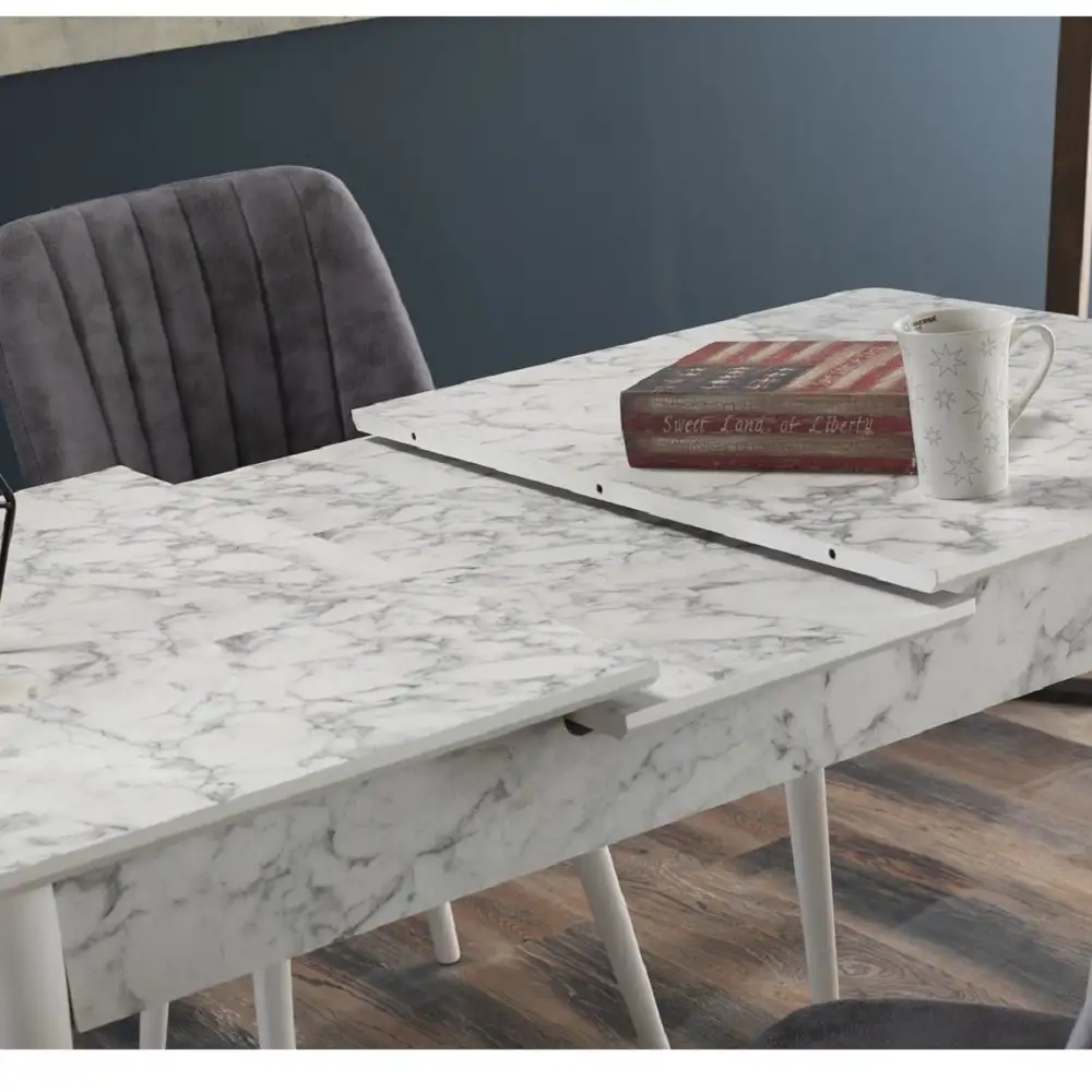 Masa extensibila dining, alb marmurat – ideala pentru orice sufragerie