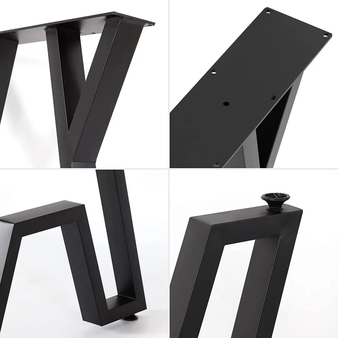Set de 2 picioare pentru masa bucatarie sau dining realizate din metal cu grosime 60×20 vopsite electrostatic culoare negru. Nu include blatul mesei.