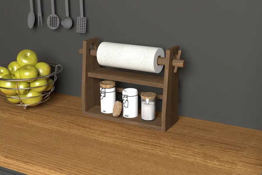 Acest model poate fi amplasat pe blatul de gatit sau langa chiuveta. Astfel, te poti sterge pe maini sau poti usca vesela mai rapid. In plus, daca ai o aniversare cu mai multi invitati, suportul amplasat pe masa este de un real ajutor pentru oaspeti. Culoarea sa de brun inchis ii confera mai multa eleganta si rafinament. Nuanta sa este usor de asortat cu alte piese de mobila. Spre exemplu, mai poti integra si o masa de bucatarie cu scaune si un dulap bucatarie in acorduri de bej sau nuc.