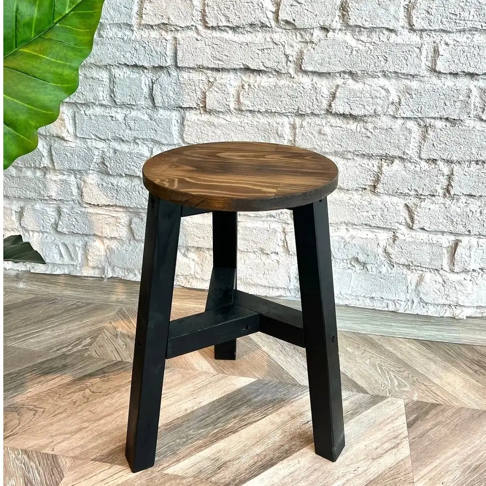 Scaun taburet Heidi , din lemn, culoare nuc-negru, 45 cm