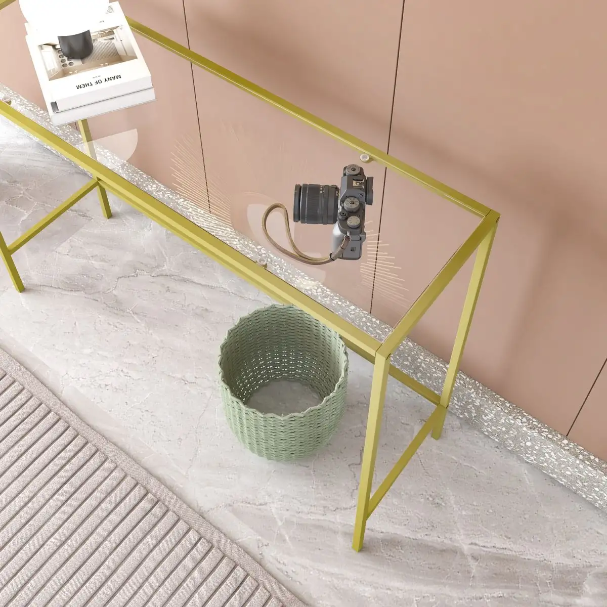 Design auriu elegant: Profilul metalic vopsit electrostatic în culoarea auriu adaugă o notă de lux și rafinament, transformând consola într-un element central al decorului tău.