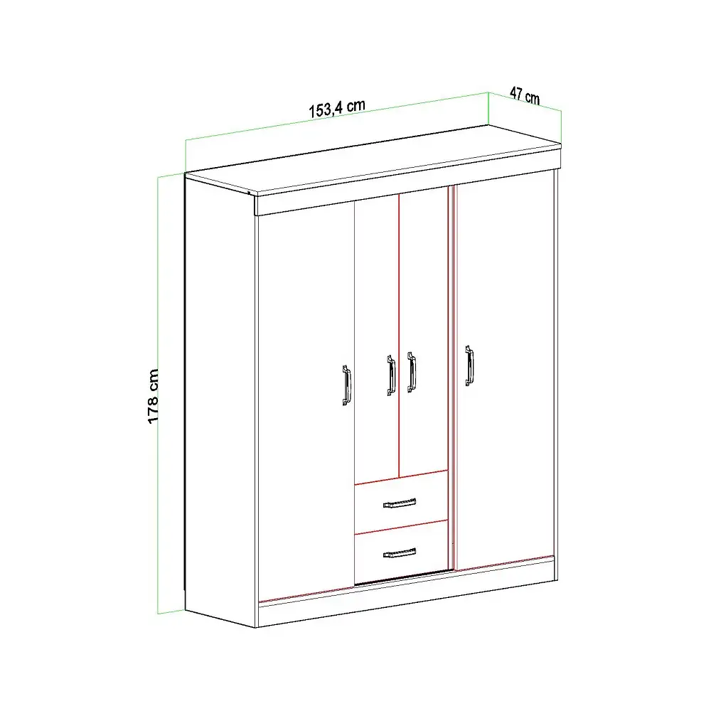 Alege sa decorezi inteligent si sa beneficiezi de mai mult spatiu pentru haine, cu un dulap Homs 4 usi, 2 sertare alb si nuc. Sifonierul cu design modern imbina functionalitatea cu rafinamentul. Acesta este bine compartimentat, fiiind prevazut cu 4 usi si 2 sertare, ideal pentru camerele mici de apartament si pentru apartamente de inchiriat, ori camere de studenti.