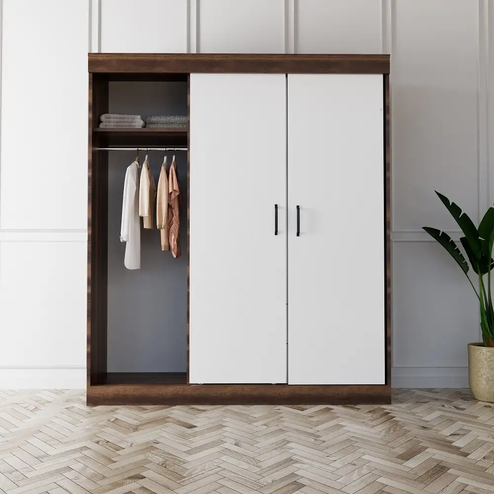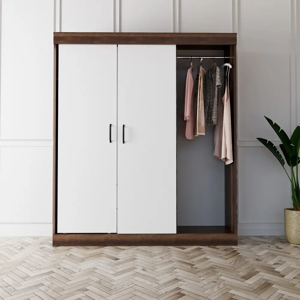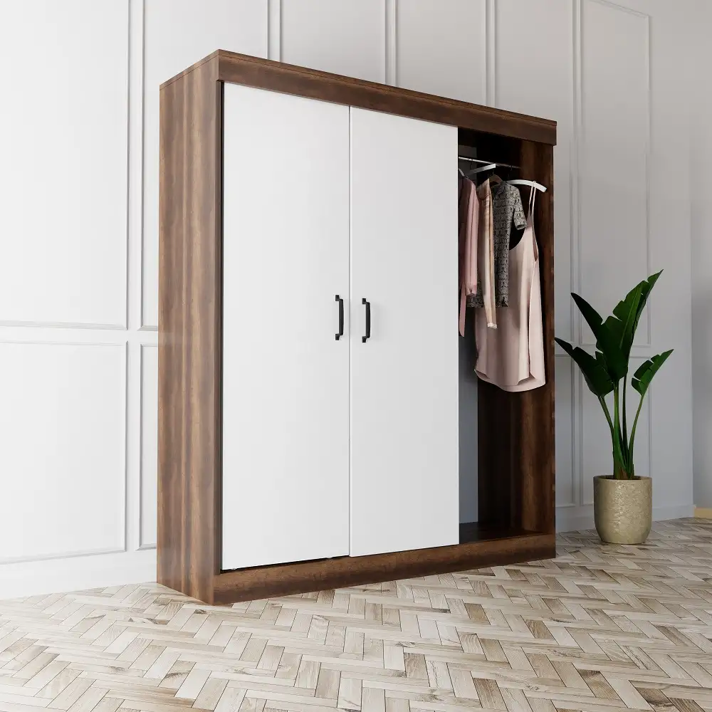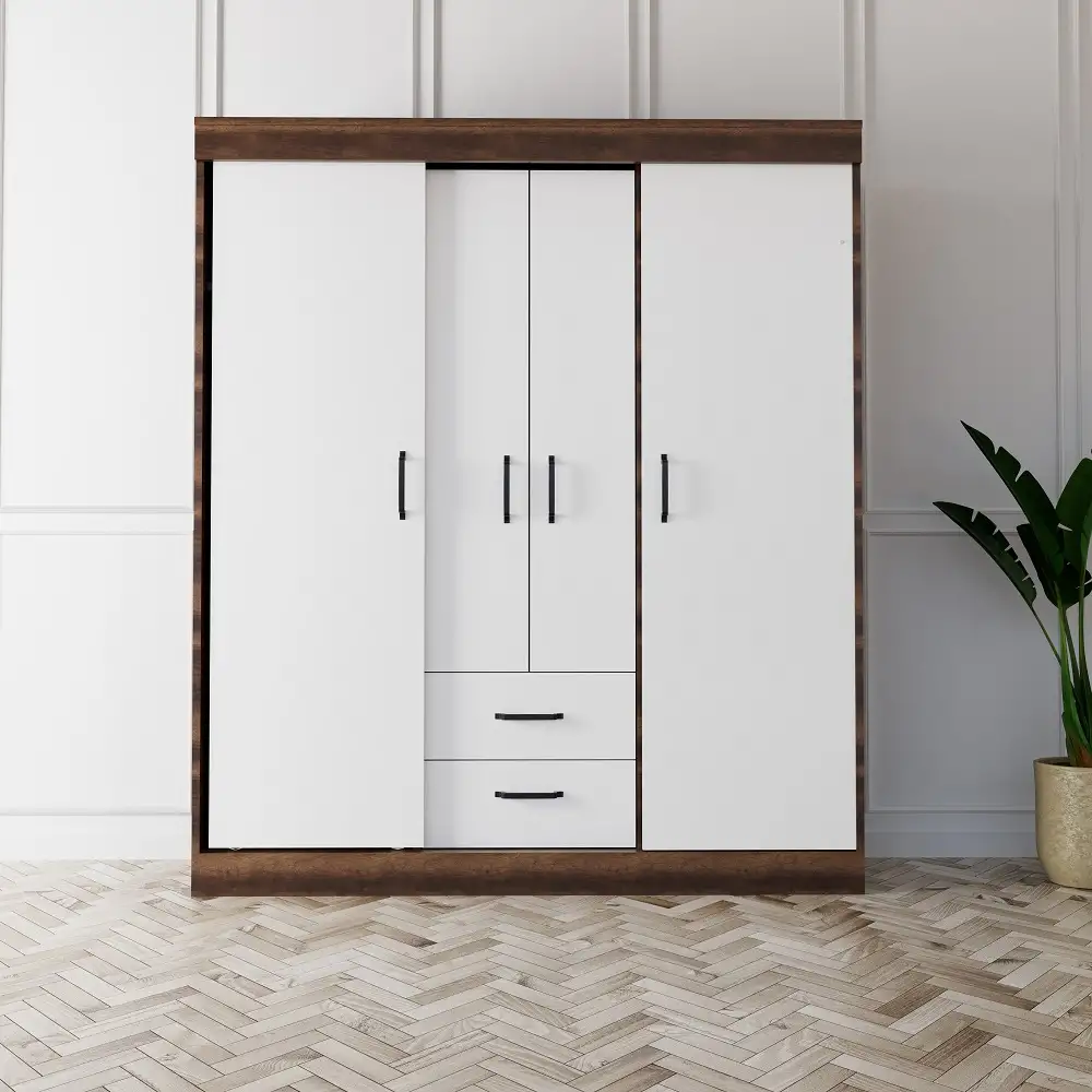 Dulap Homs 4 usi, 2 sertare alb-nuc dressingul perfect din orice dormitor sofisticat