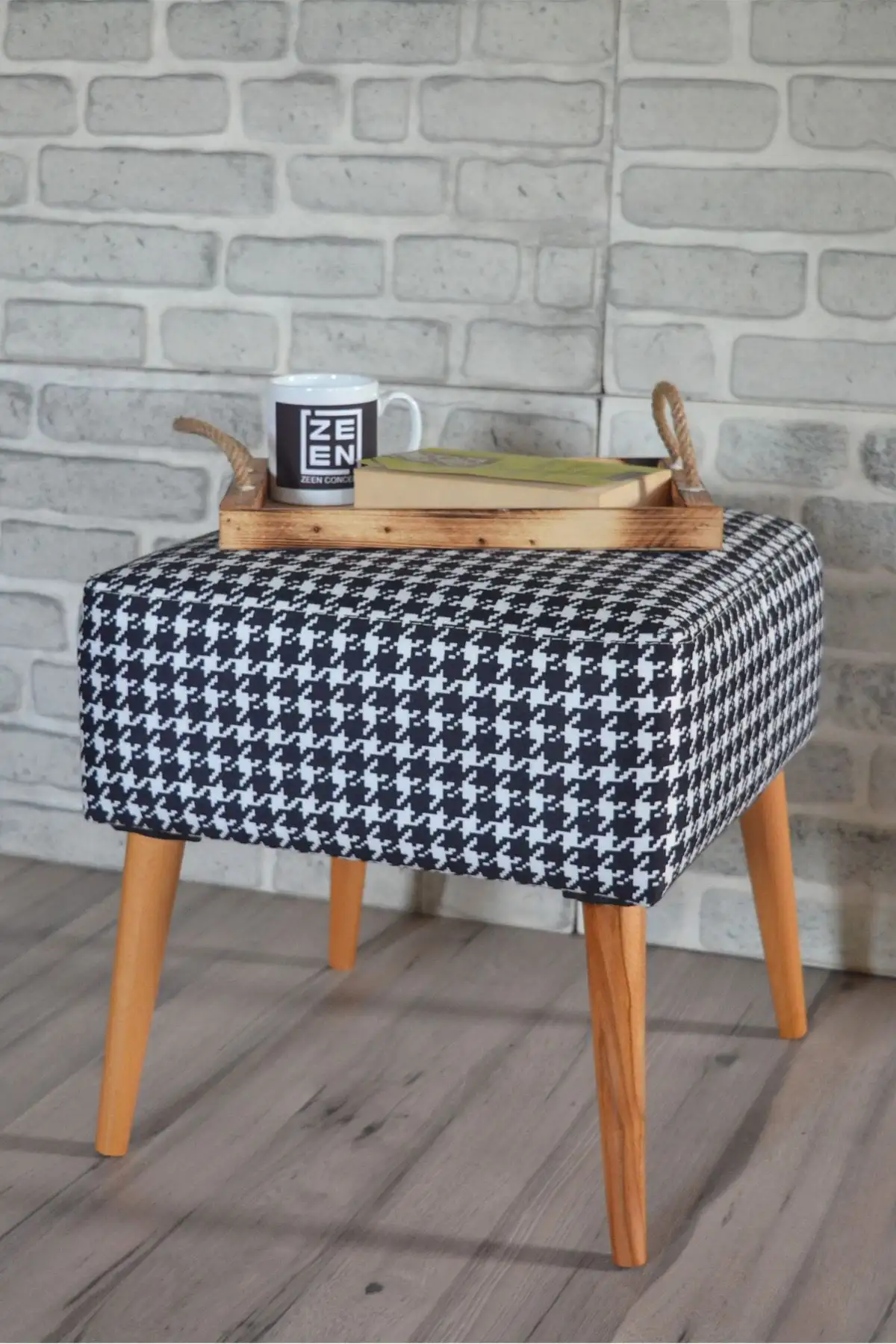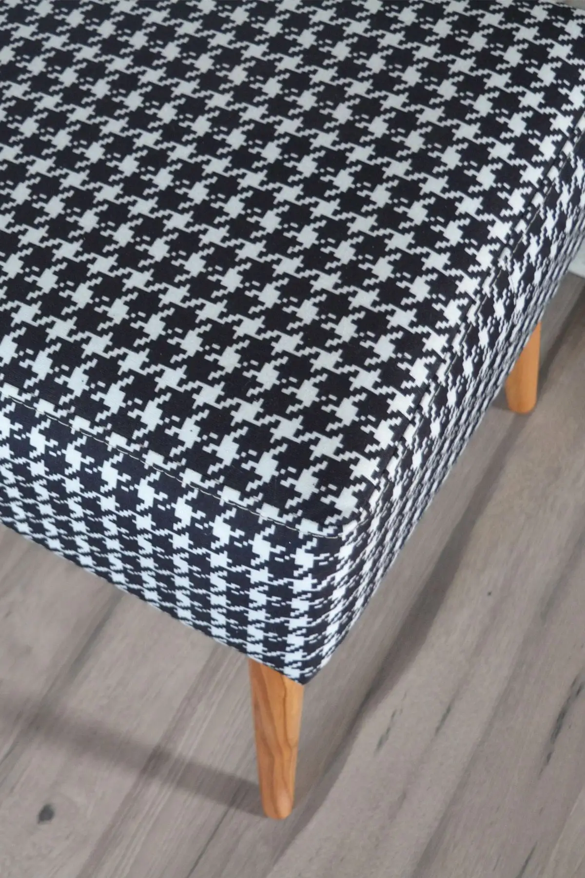 Taburet patrat imprimeu pepit Valencia Homs, 42 x 45 x 42 cm alb-negru