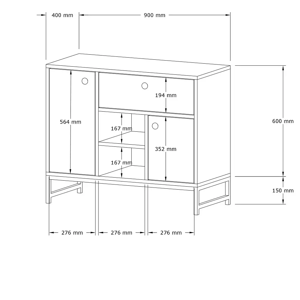 100% MELAMINE COATED PARTICLE BOARDThickness: 18 mmWidth: 90 cm Height: 75 cm Depth: 40 cmLeg Height: 15 cmMetal LegsNumerous Shelves