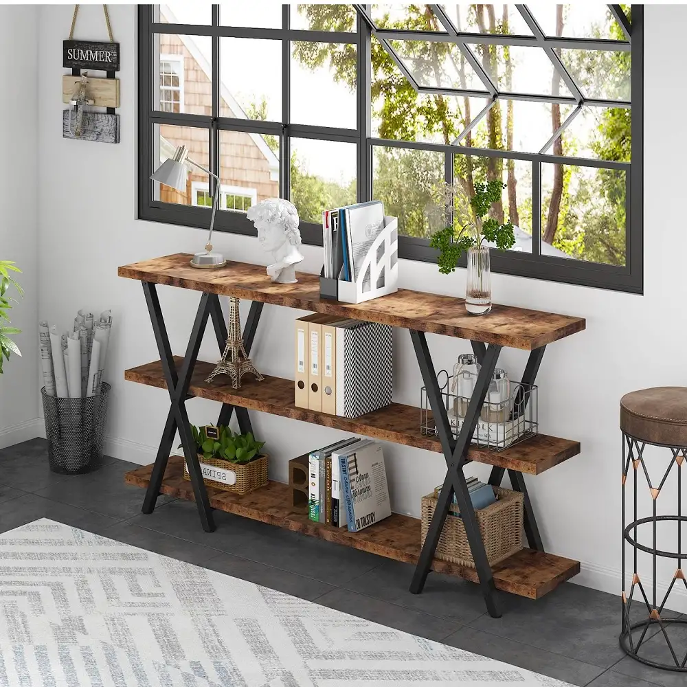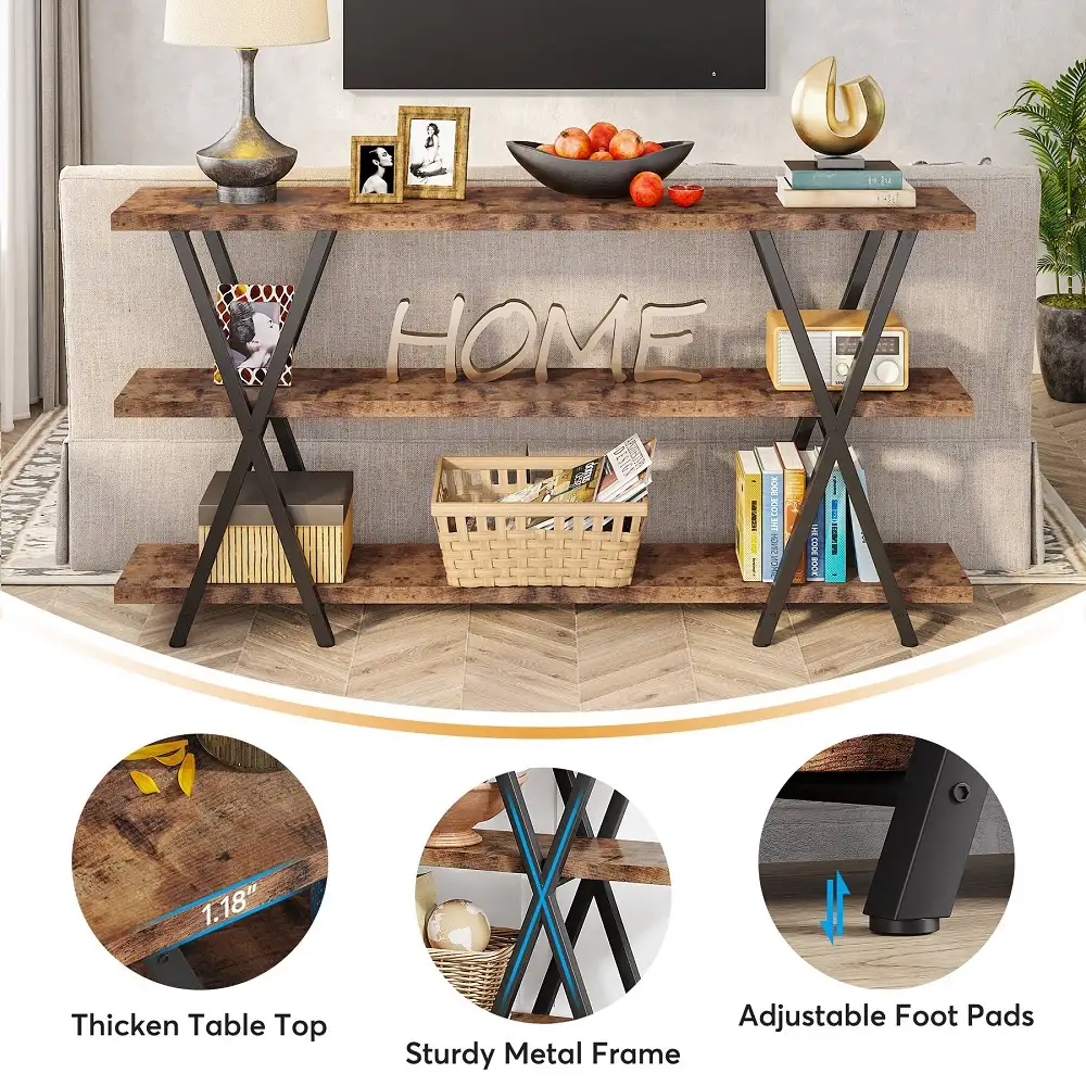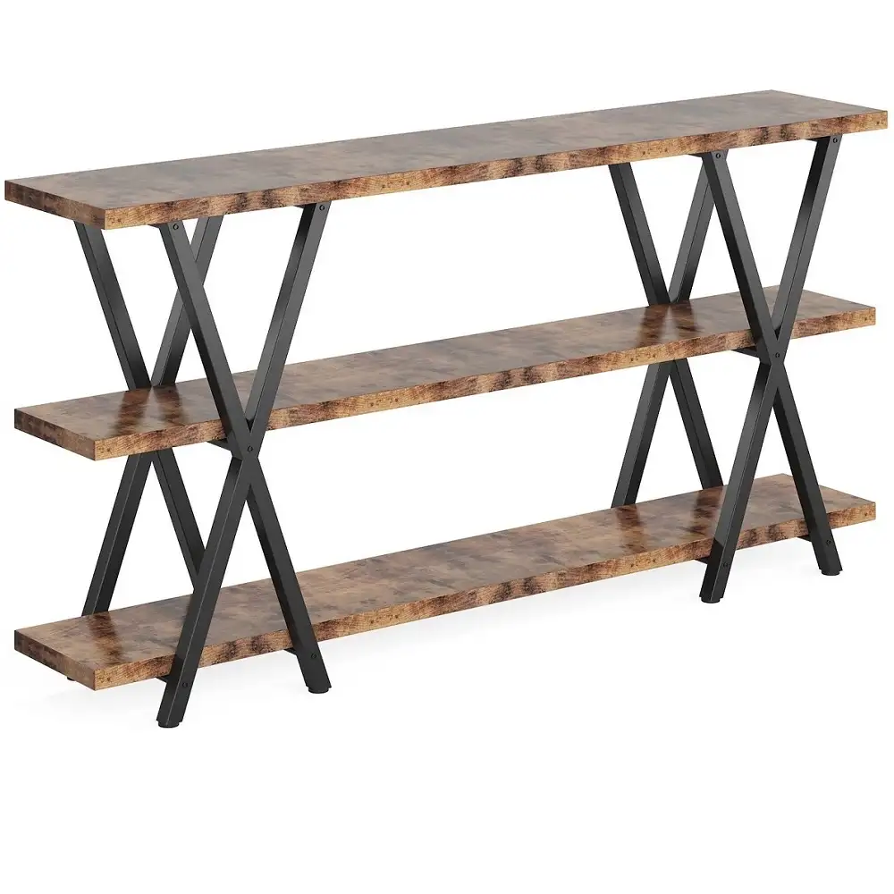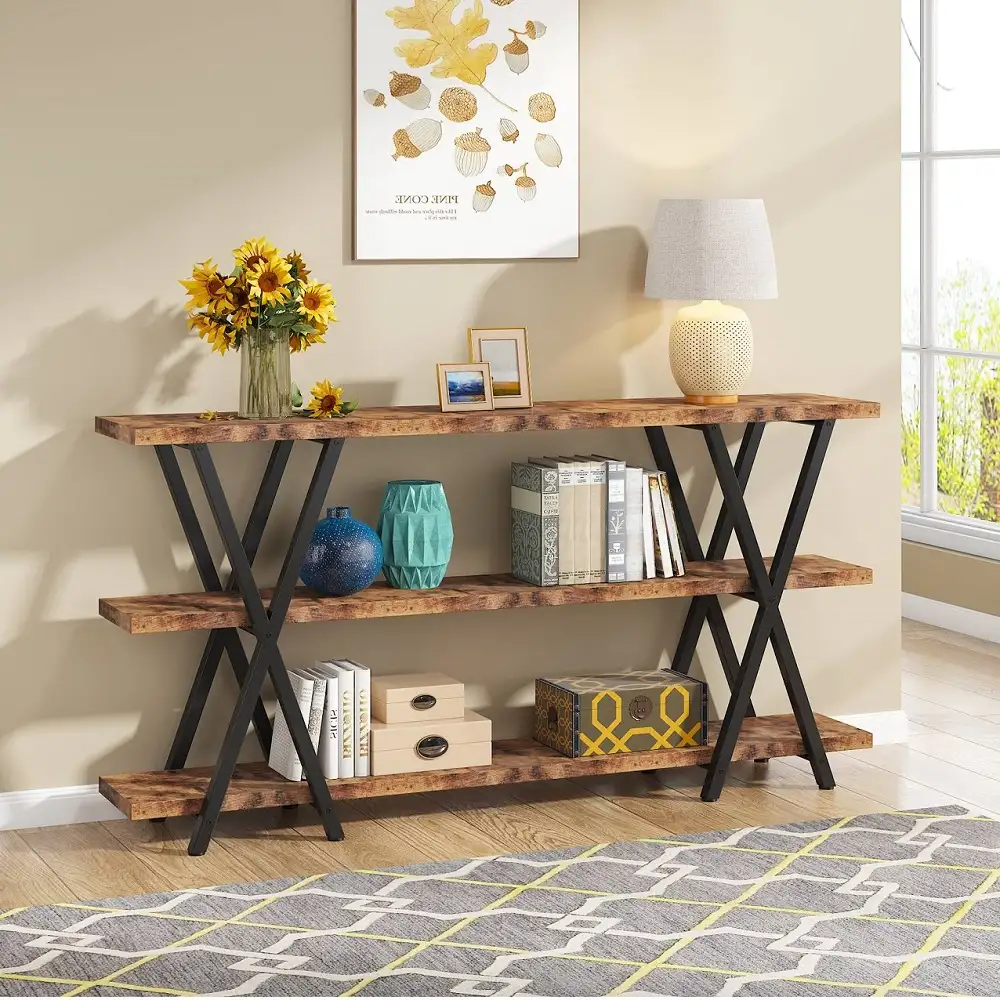 Combină consola cu covoare și perne în tonuri neutre pentru un look industrial armonios.