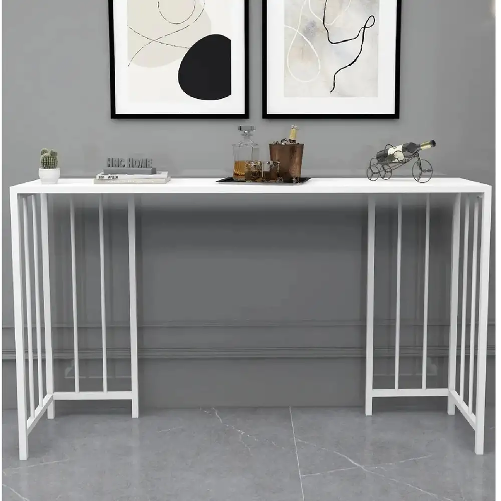 Design rafinat: combinația între blatul alb și cadru metalic alb oferă un aspect modern și luxos.
