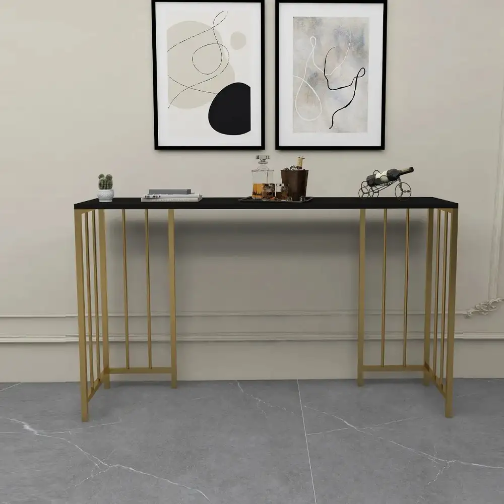 Masă Bucătărie Tip Bar – Auriu & Negru, 150x35x90 cm | Ideală pentru Acasă sau HoReCa