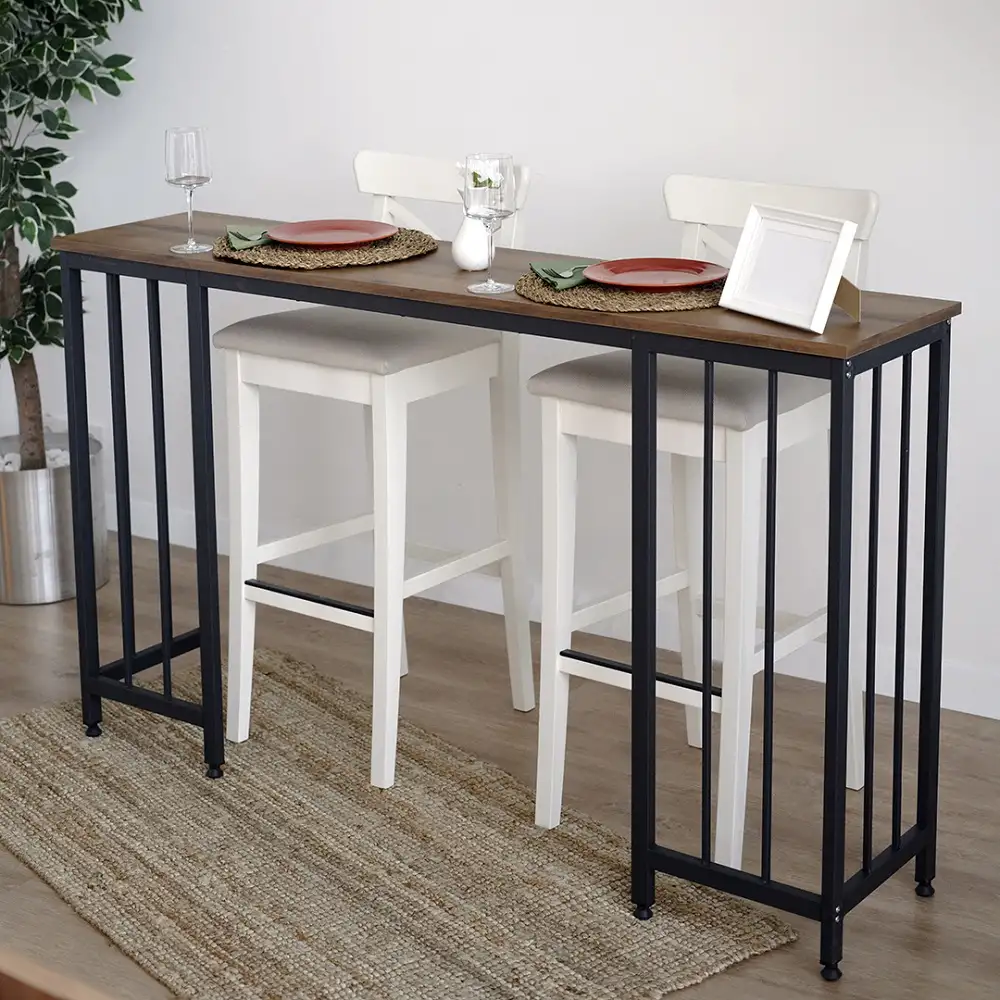 Această masă tip bar îmbină perfect estetica și utilitatea, oferind un spațiu optim pentru servire și socializare.