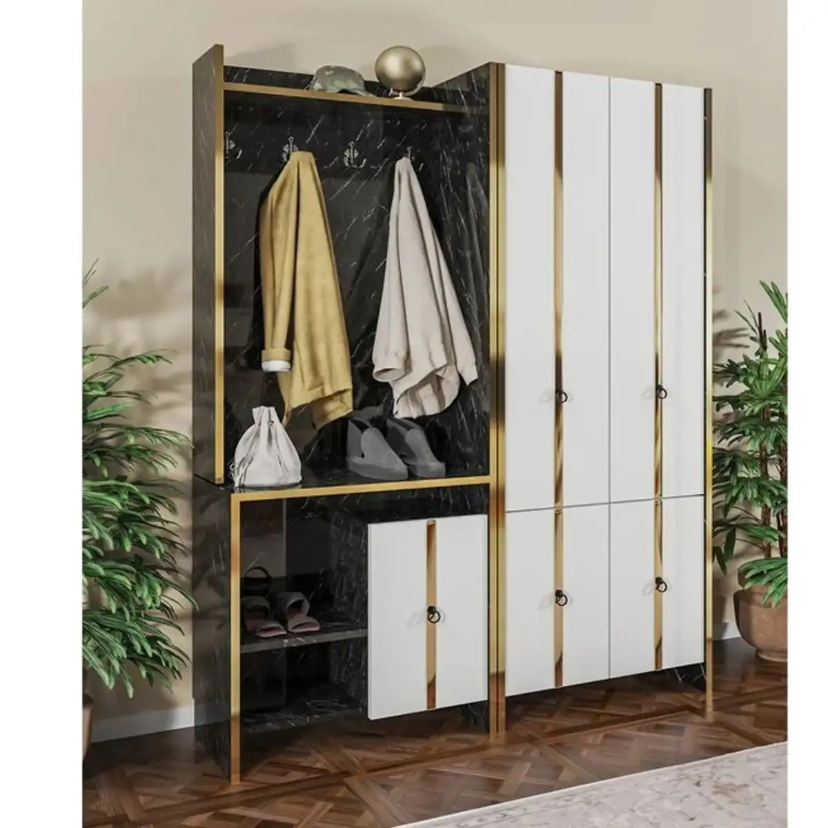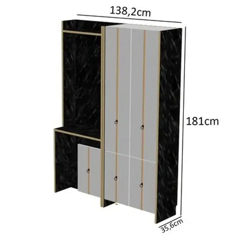 Cuier hol cu pantofar alb-auriu-negru,Homs 181 x 35.6 x 138.2 cm un spatiu mai bine organizat in casa ta