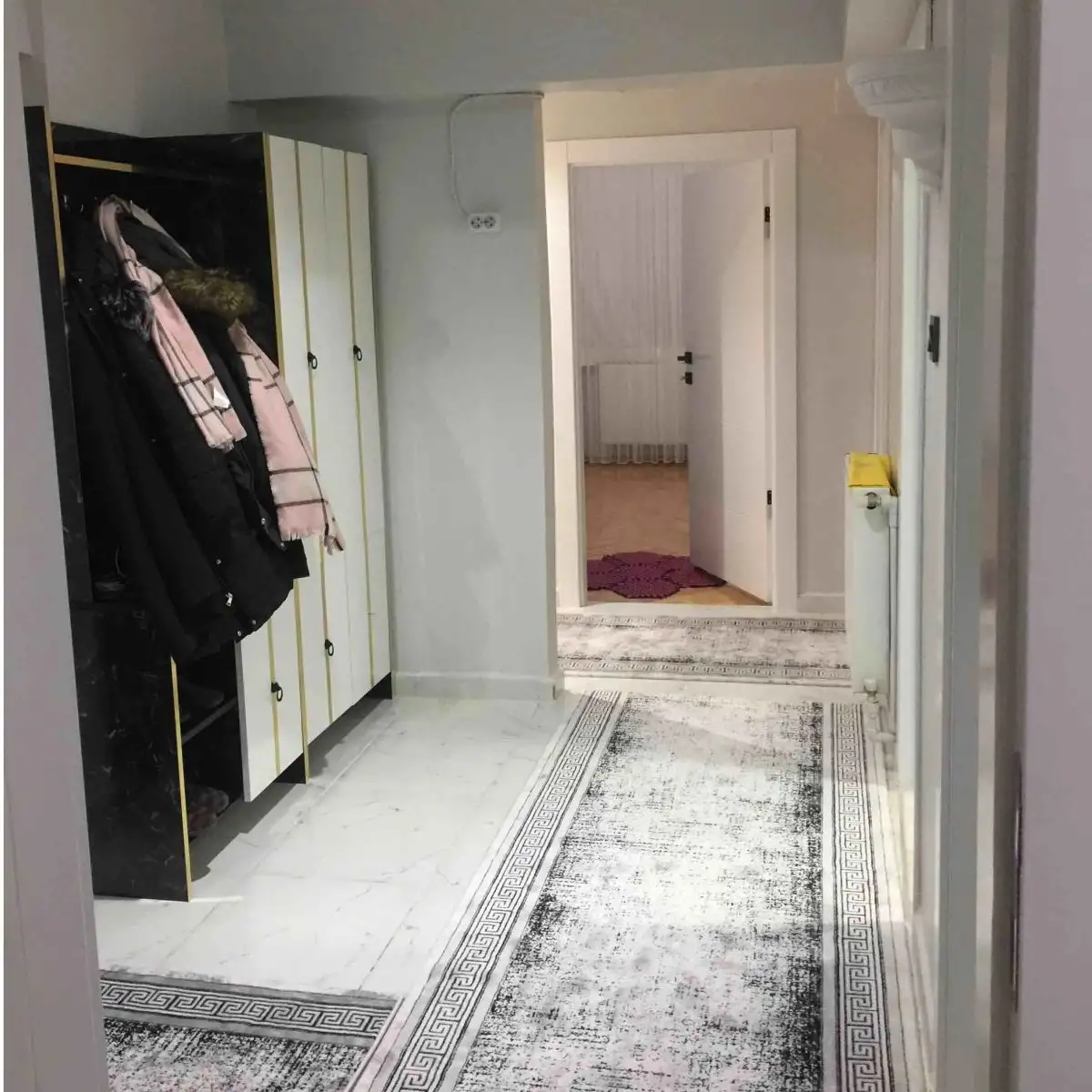 Mobilier pentru hol stil modern elegant. Este compartimentat astfel incat sa iti fie folositor- agatatori pentru haine, bara umerase cu usi , rafturi pentru incaltaminte
