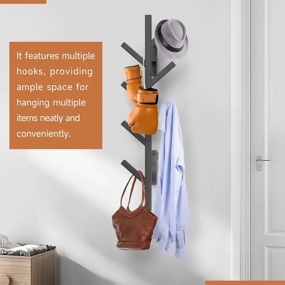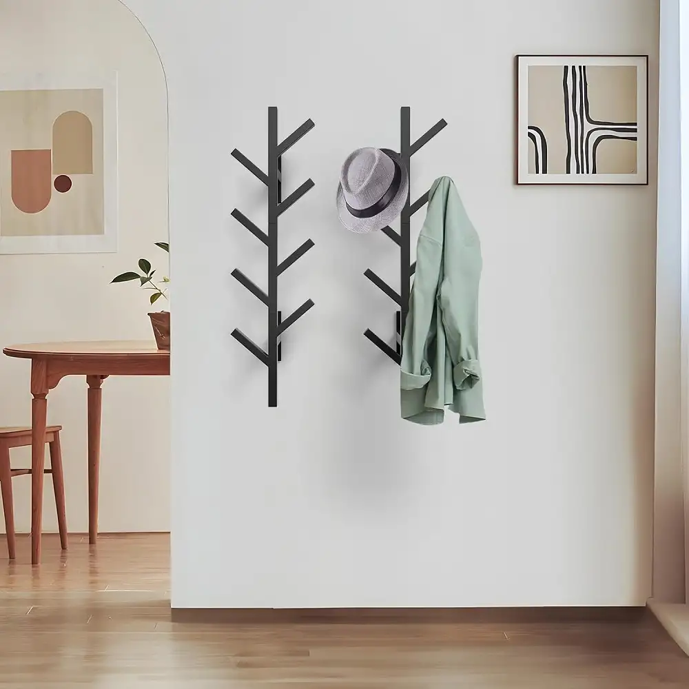 Dispune de 8 agățători practice, suficient de rezistente pentru a susține hainele de zi cu zi.