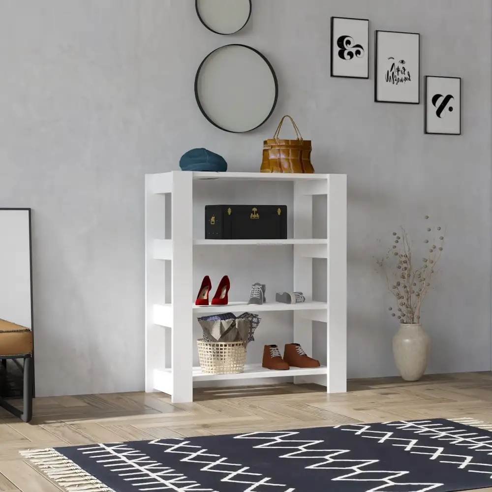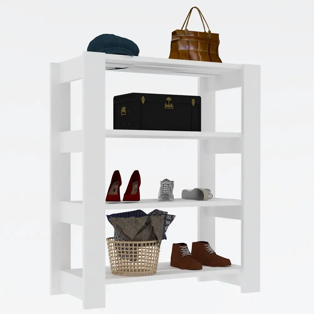 Pantofar cu 3 rafturi pentru hol culoare alb,90 cm