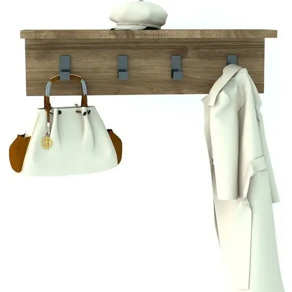 Cuier cu 4 agatatori si polita, Anatolya Homs, 60 x 16 x 15 cm, nuc