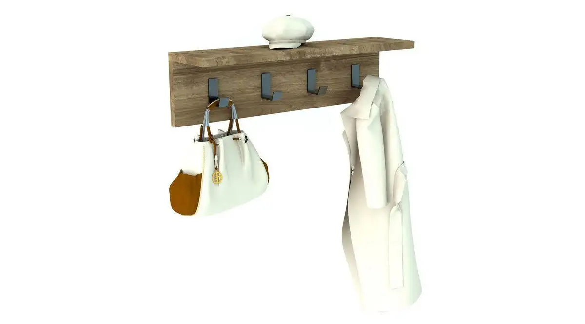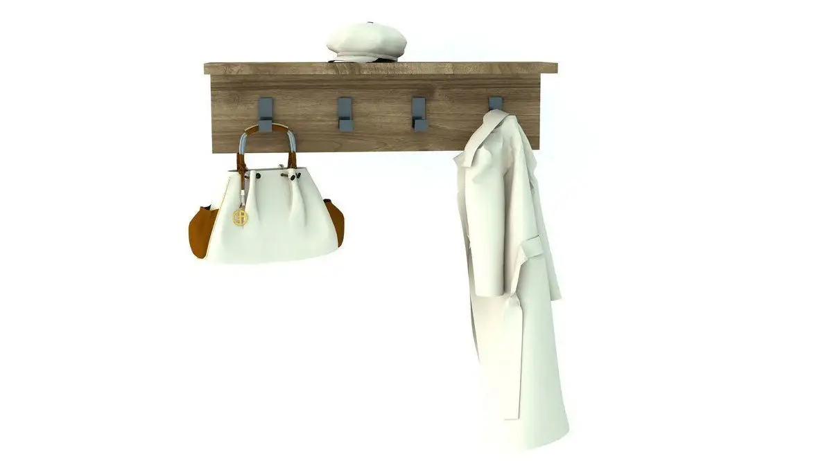 Cuie de hol cu 4 agatatori. Cuier tip polita pentru holuri de mici dimensiuni sau pentru dormitoare in care ai nevoie de spatiu de agatare. Polita superioara este utila pentru chei,poseta sau alte obiecte pe care vrei sa le ai la indemana. Datorita culorii si a liniilor simple, este usor de integrat in orice hol.