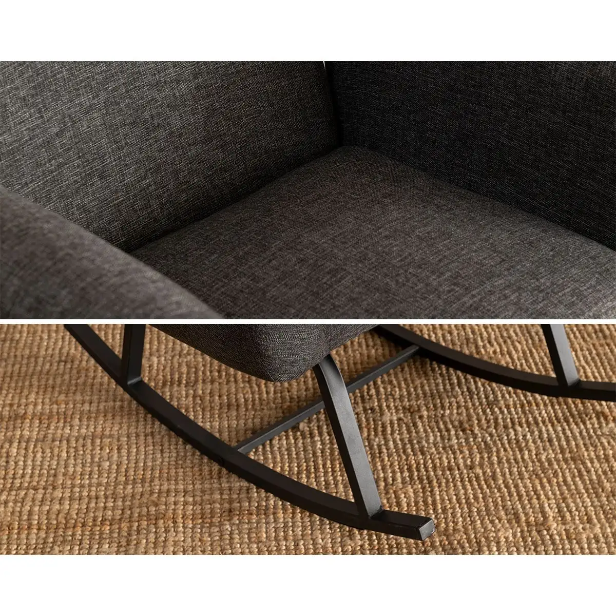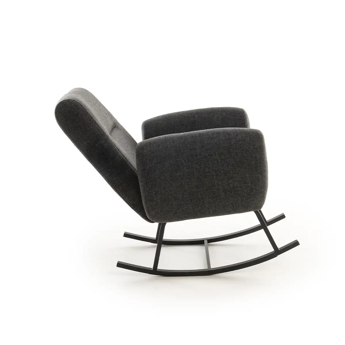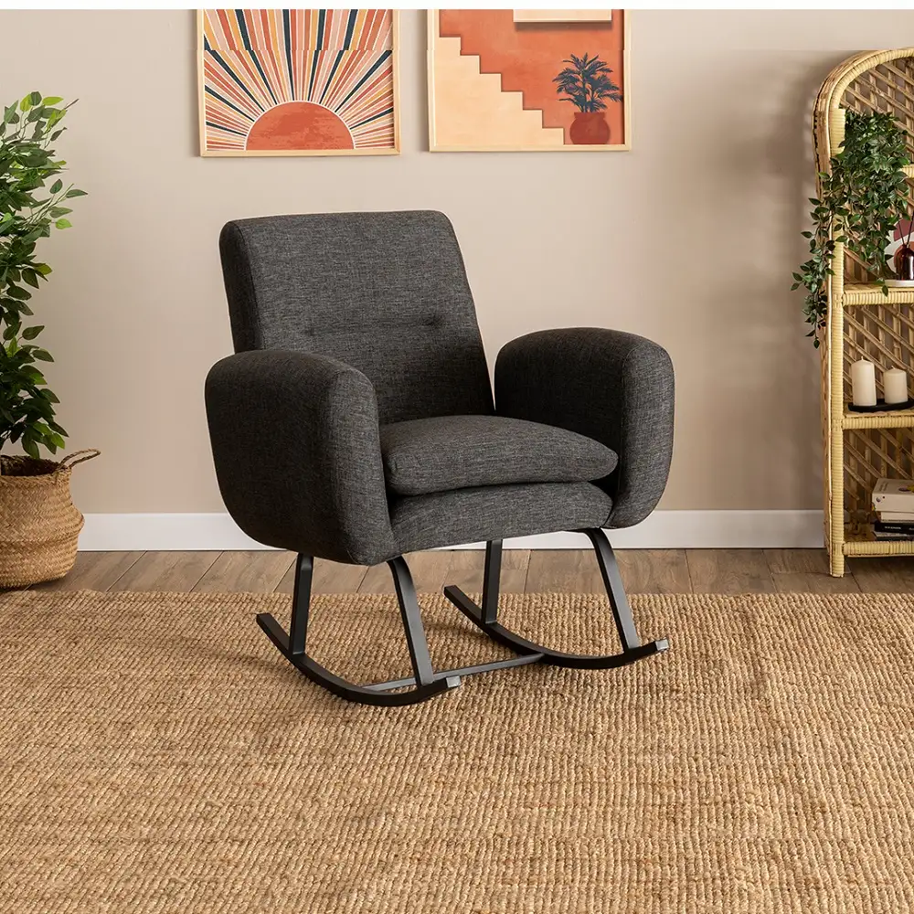 Transformă fiecare moment de liniște într-un ritual al confortului cu fotoliul balansoar tapițat, în nuanța elegantă de gri antracit. Designul său modern și balansul lin creează o experiență plăcută, perfectă pentru citit, pentru o pauză de relaxare sau pentru serile petrecute alături de cei dragi.