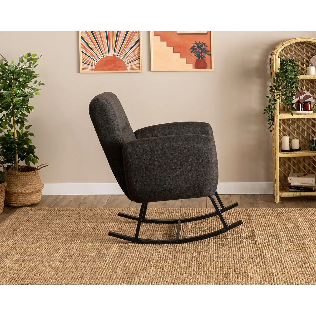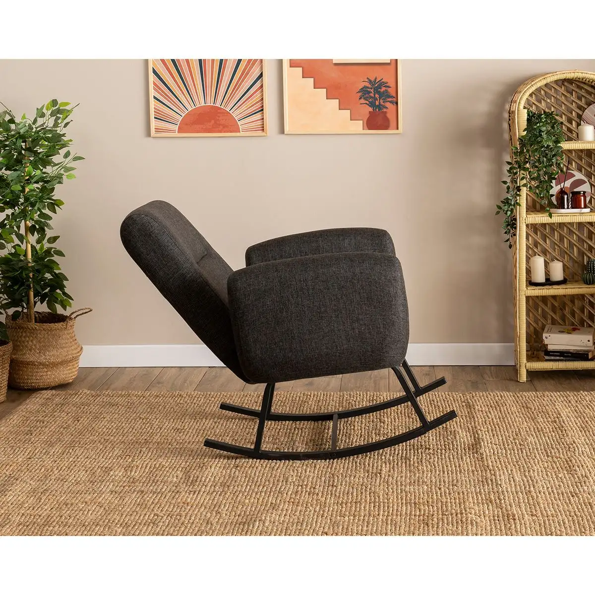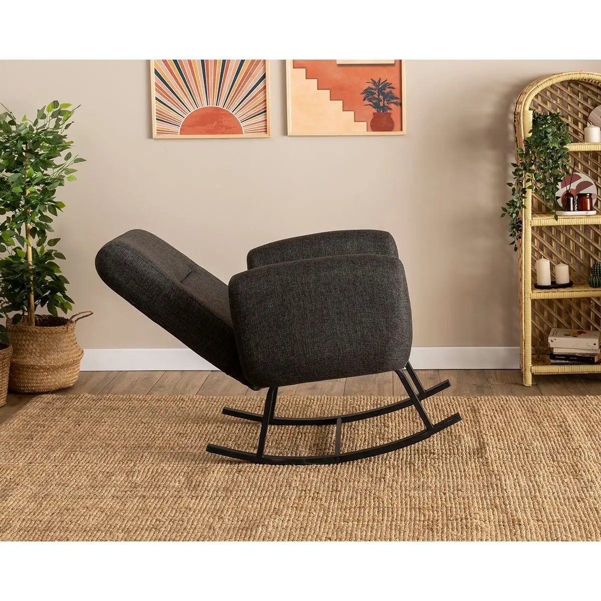 Transformă fiecare moment de liniște într-un ritual al confortului cu fotoliul balansoar tapițat, în nuanța elegantă de gri antracit. Designul său modern și balansul lin creează o experiență plăcută, perfectă pentru citit, pentru o pauză de relaxare sau pentru serile petrecute alături de cei dragi.