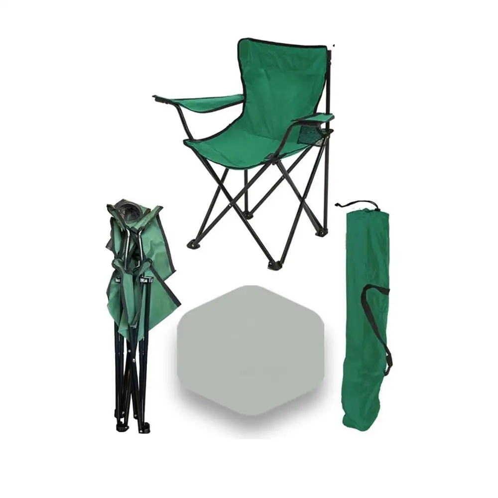 Set 2 scaun pliabil cu cotiera si suport,pentru camping,gradina,verde