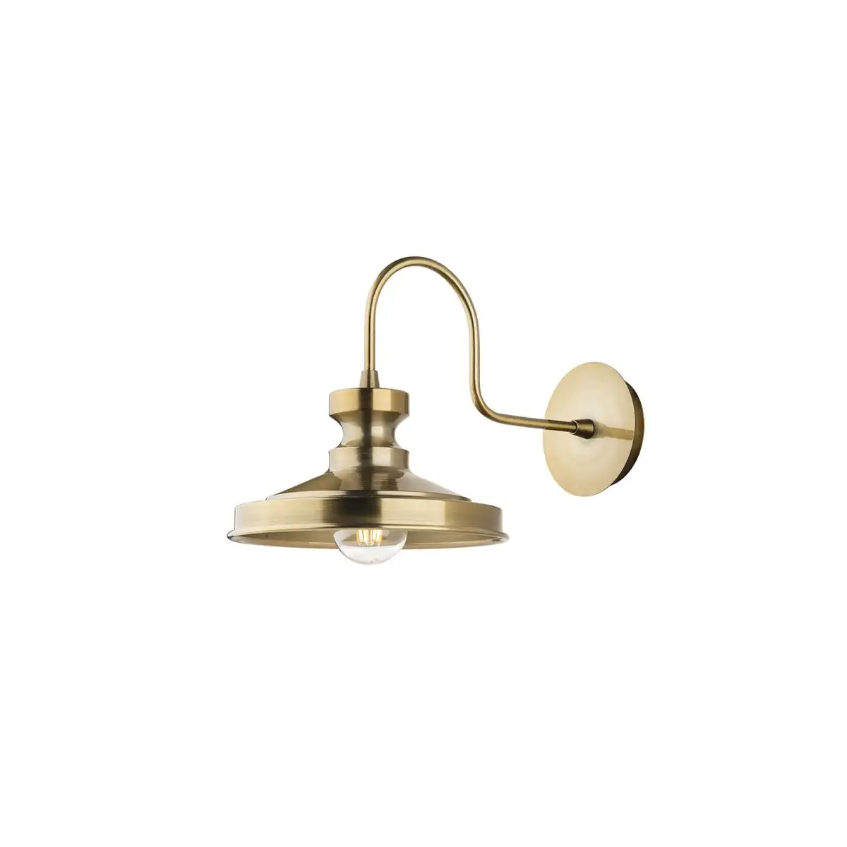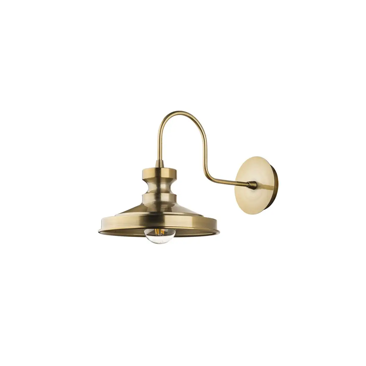 Aplica de perete pentru interior realizata din corp metal culoare auriu cu glob din sticla culoare alba.Becul nu este inclus.