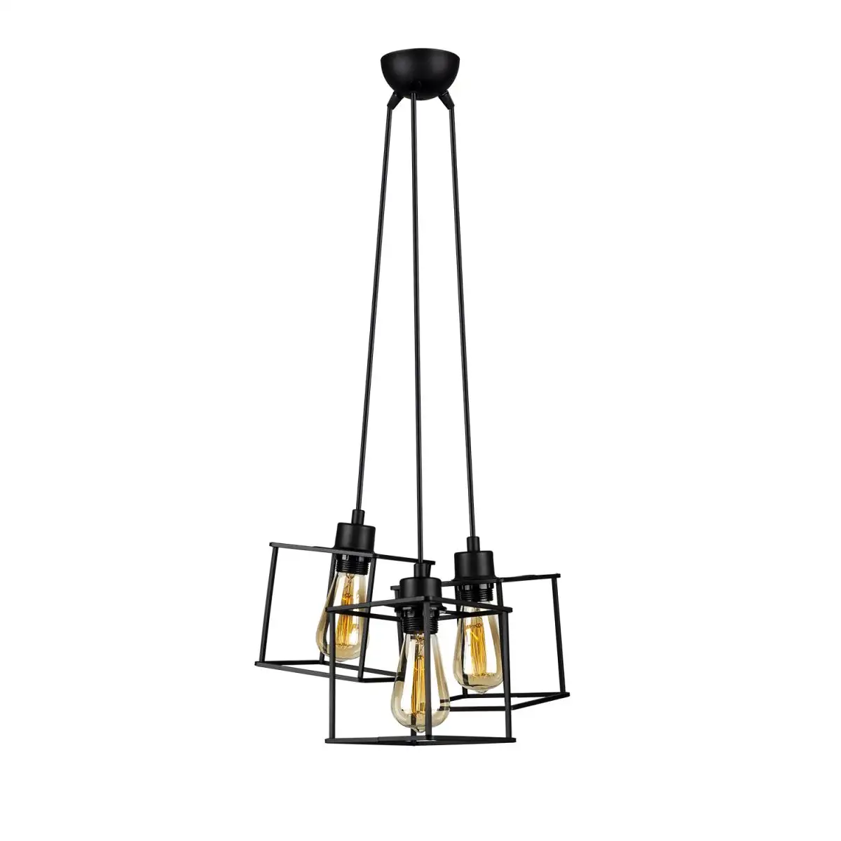 Lustra tip pendul cu 3 globuri sticla realizata din corp metal culoare neagra.Becul nu este inclus.