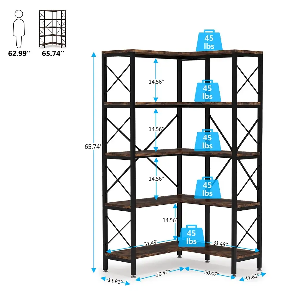 Biblioteca Cindy pentru colt din culuare nuc si negru, 167 cm