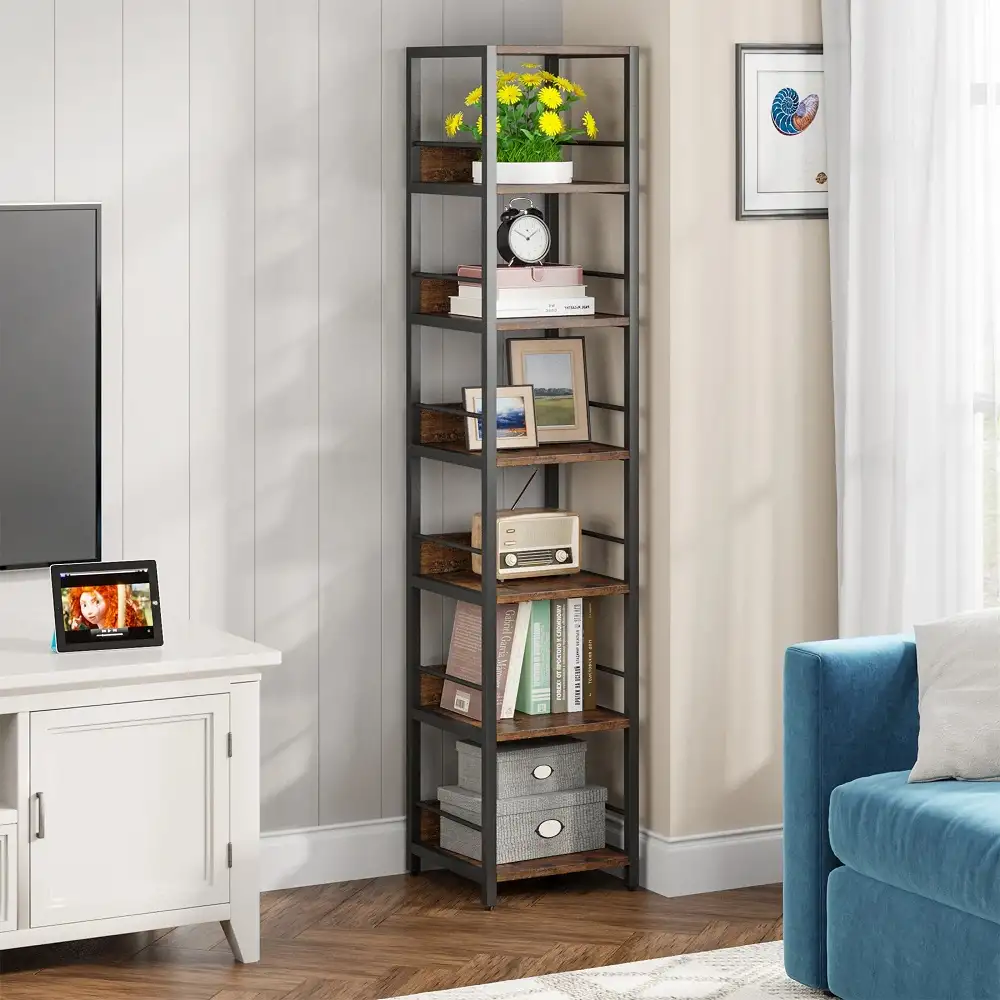 Optimizează spațiul în locuința ta cu acest model de bibliotecă de colț, o piesă versatilă și elegantă, ce combină aspectul cald al lemnului cu rezistența și robustețea metalului. Construcția sa verticală, cu 7 niveluri, o face ideală pentru spațiile mai mici, ocupând puțin spațiu, însă fără a compromite capacitatea de depozitare. Poți folosi o singură bibliotecă pentru un colț discret sau mai multe pentru a crea configurații spectaculoase în living, pe un perete gol.
