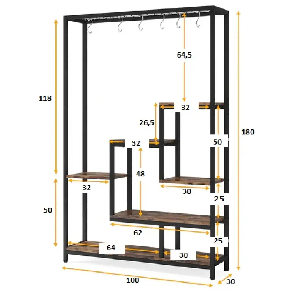 Grosime rafturi: 1,8 cmPot exista diferențe de 1-2 mm în dimensiunile produsului din cauza tăierii.Accesoriile prezentate în imagine nu sunt incluse în pachetul produsului.Dimensiunile profilului metalic: 20×20 mm. Profilele metalice sunt vopsite într-un cuptor de vopsire electrostatică cu pulbere. Acest lucru previne ruginirea și prelungește durata de viață a produsului.Produsul are culoarea andaluză.Produsul este livrat neasamblat. Instrucțiunile de instalare sunt incluse în ambalajul produsului. Dacă întâmpinați probleme la instalare, vă rugăm să ne contactați. Vă recomandăm să asamblați produsul cât mai curând posibil după primirea acestuia.Instalați produsul pe o suprafață moale.