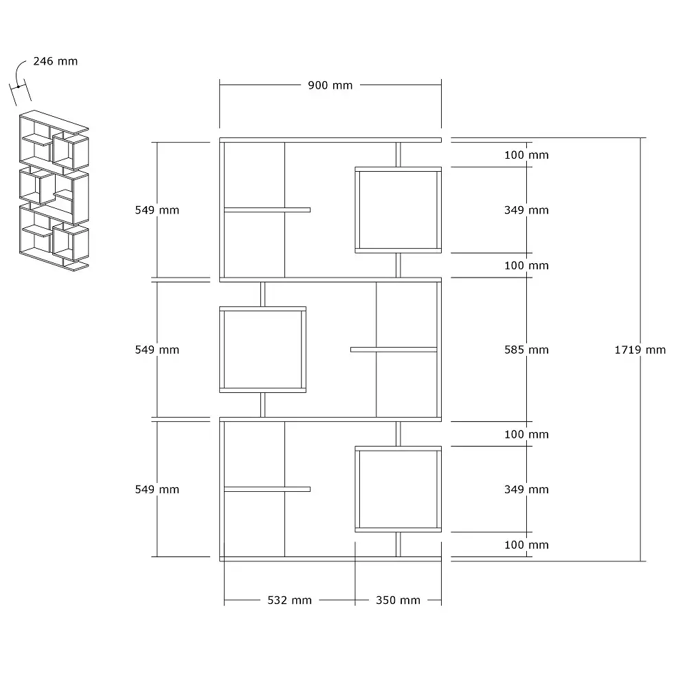 100% MELAMINE COATED PARTICLE BOARDThickness: 18 mmWidth: 90 cm Height: 171,9 cm Depth: 24,6 cm