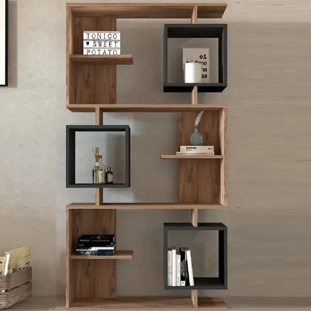 Biblioteca Idalia culoare nuc si antracit 172 cm