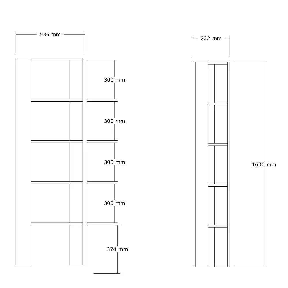 100% MELAMINE COATED PARTICLE BOARDThickness: 18 mmWidth: 53 cm Height: 160 cm Depth: 23 cmCan be Fixed to the WallAdditional StorageNumerous Shelves