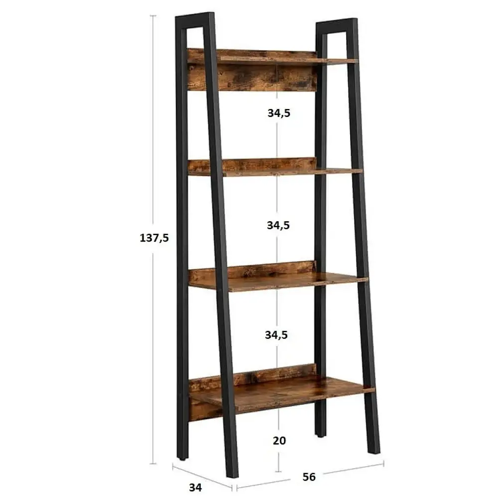Etajera cu 4 polite, biblioteca culoare nuc, 137cm