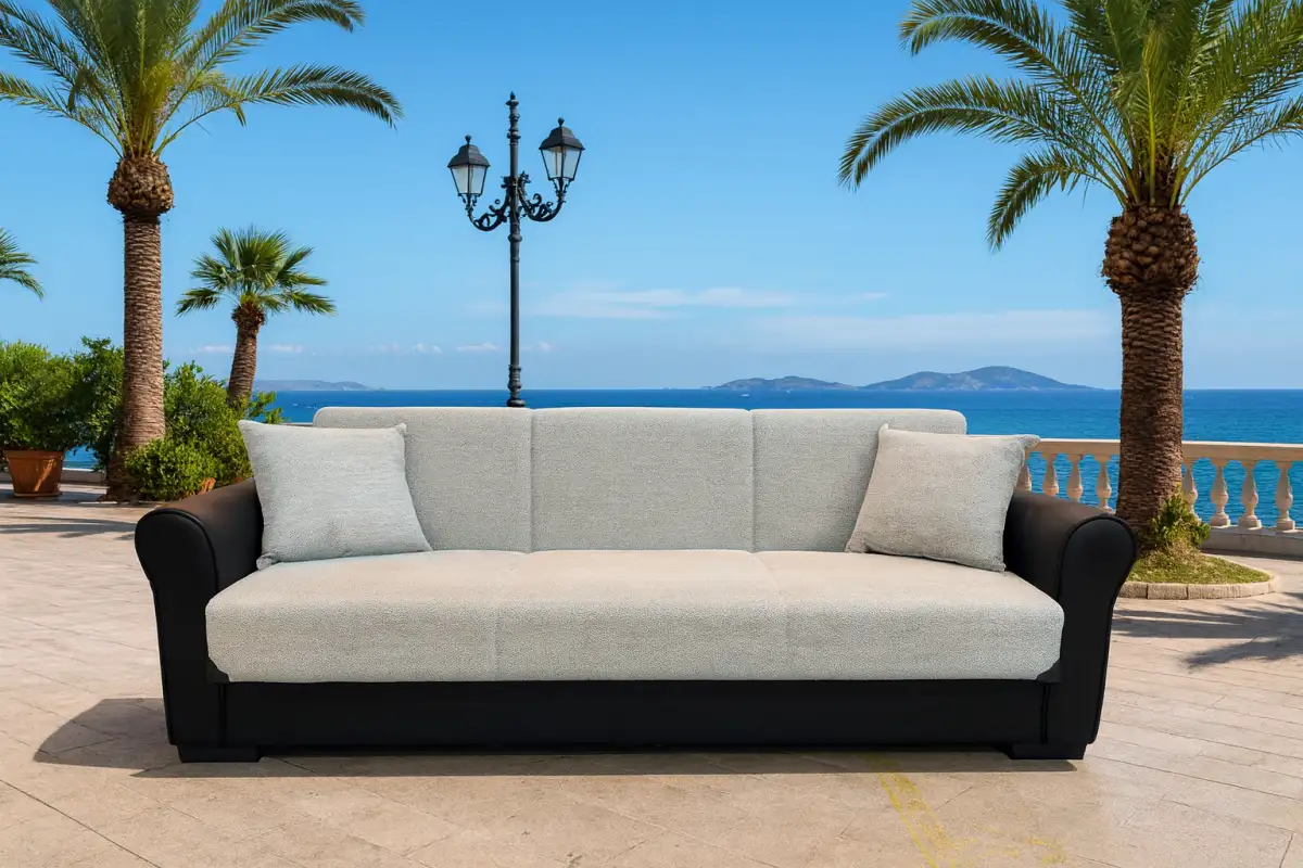 Canapea extensibila 3 loc cu spatiu de depozitare – stofa negru si bej – Country