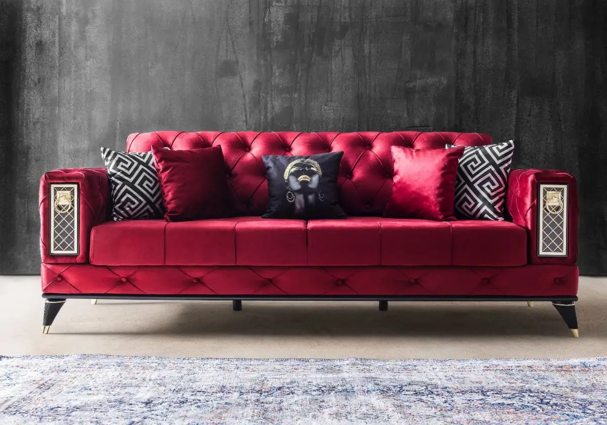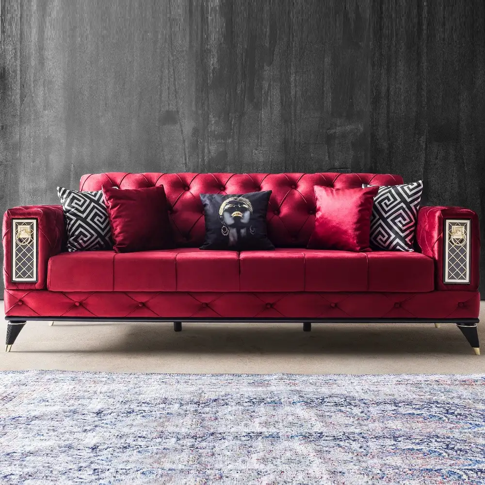 Canapea extensibila 3 locuri living 225x89x90 cm – stofa rosie – Bolivia
