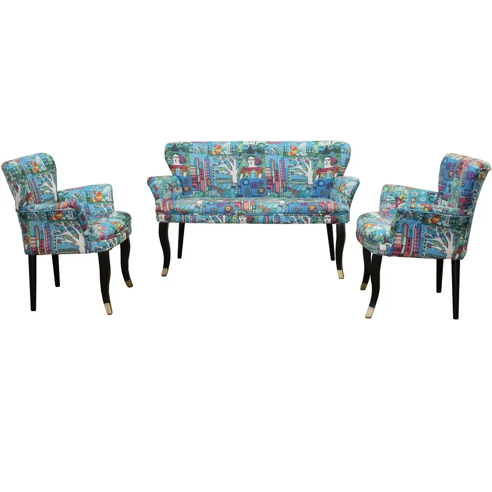 Redefineste casa ta si pune frumusetea pe primul loc cu un set canapea cocktail Relax Homs textil albastru. Acest design practic si de efect este unul care te va ajuta sa-ti intregesti stilul casei. Liniile rotunjite si formatul retro il face ideal caselor in stil clasic, iar culorile il fac perfect in casele moderne. Poziționat în living sau într-un colț al dormitorului, acesta adaugă un aer sofisticat și invită la relaxare. În plus, împletirea lemnului cu albastrul viu si patternul mutlicolor sunt ingredientele cheie pentru un ansamblu original.