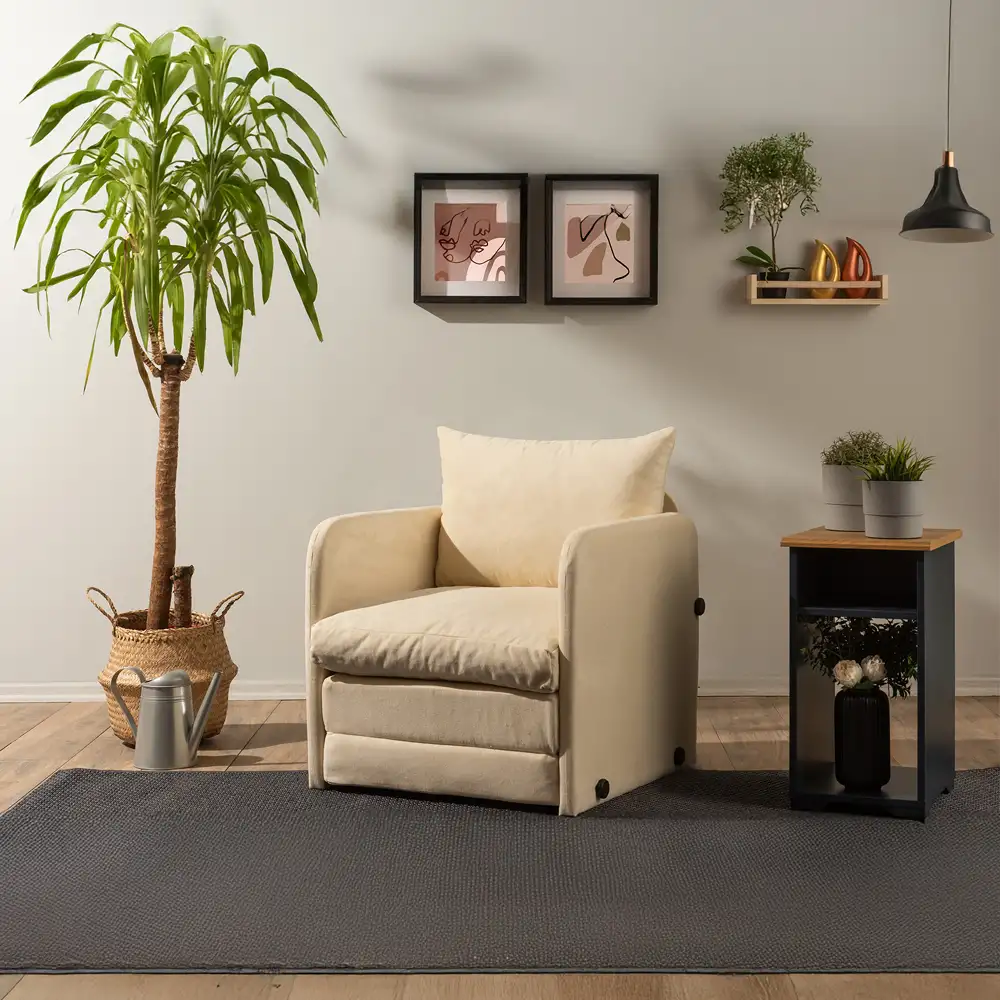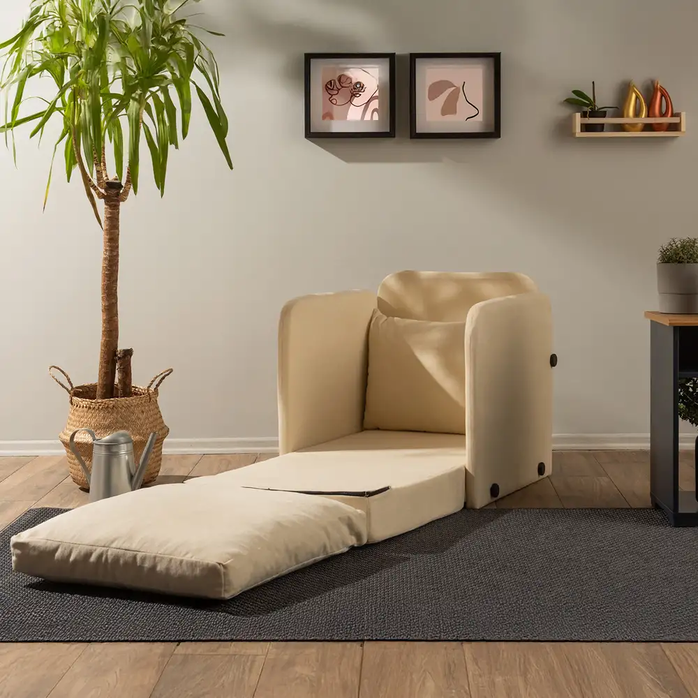 Perfect pentru living, dormitor sau orice spațiu de relaxare, acest fotoliu se transformă rapid într-un pat confortabil pentru vizite sau momente de odihnă.