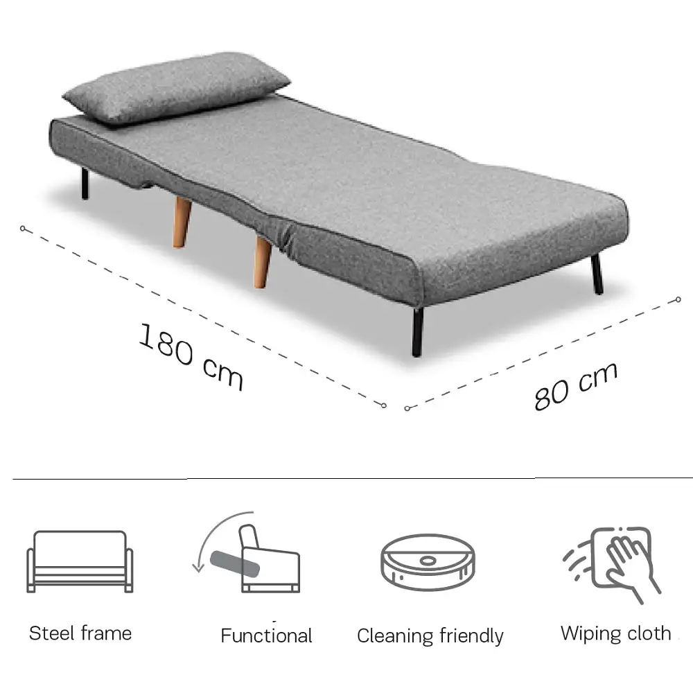 Perfect pentru living, dormitor sau orice spațiu de relaxare, acest fotoliu se transformă rapid într-un pat confortabil pentru vizite sau momente de odihnă.
