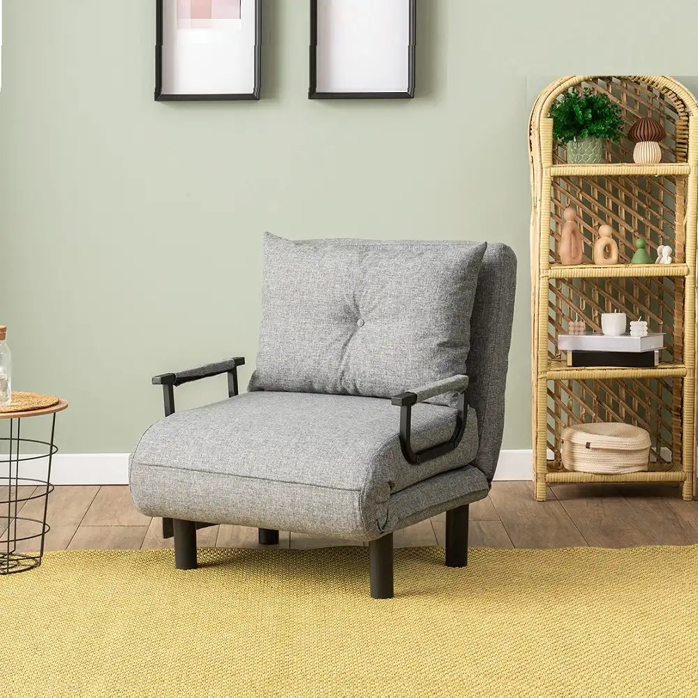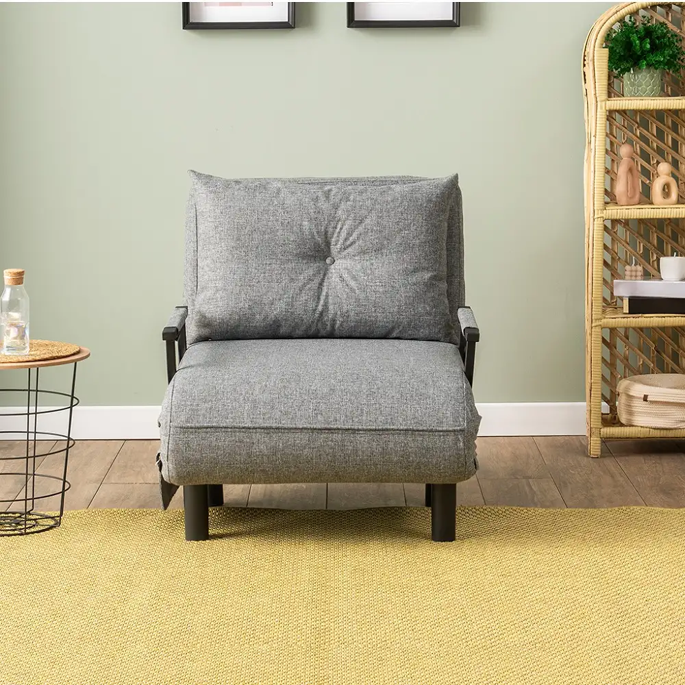 Perfect pentru living, dormitor sau orice spațiu de relaxare, acest fotoliu se transformă rapid într-un pat confortabil pentru vizite sau momente de odihnă.