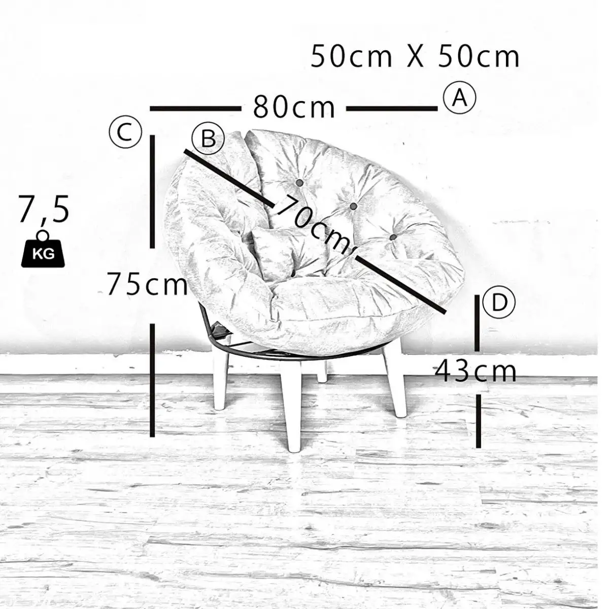 Fotoliu tapitat cu stofa si picioare metalice,rotund,homs,seria B-120,20042
