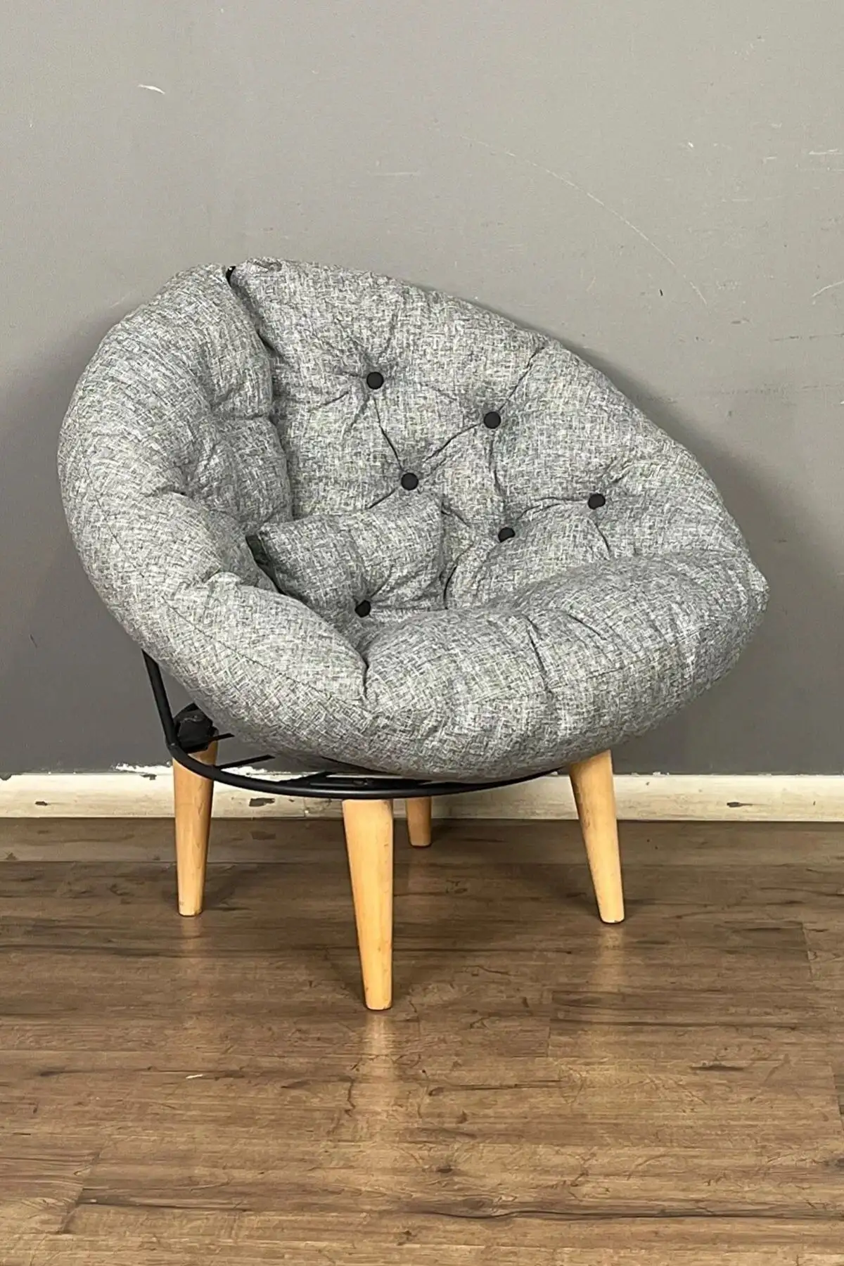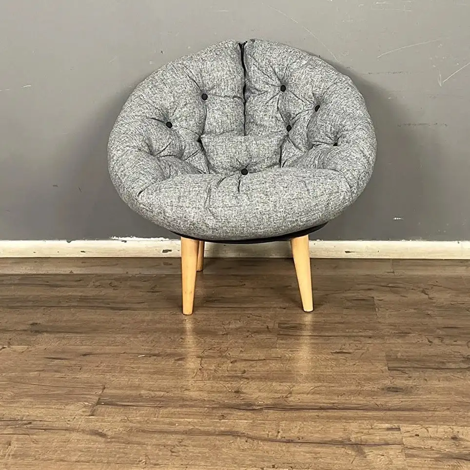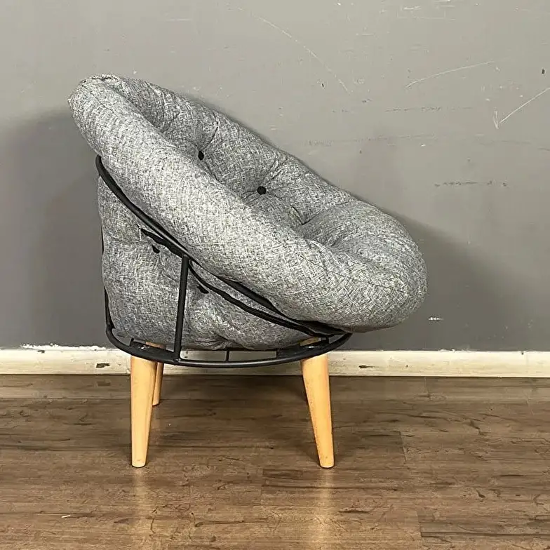 Fotoliu tapitat cu stofa si picioare metalice,rotund,homs